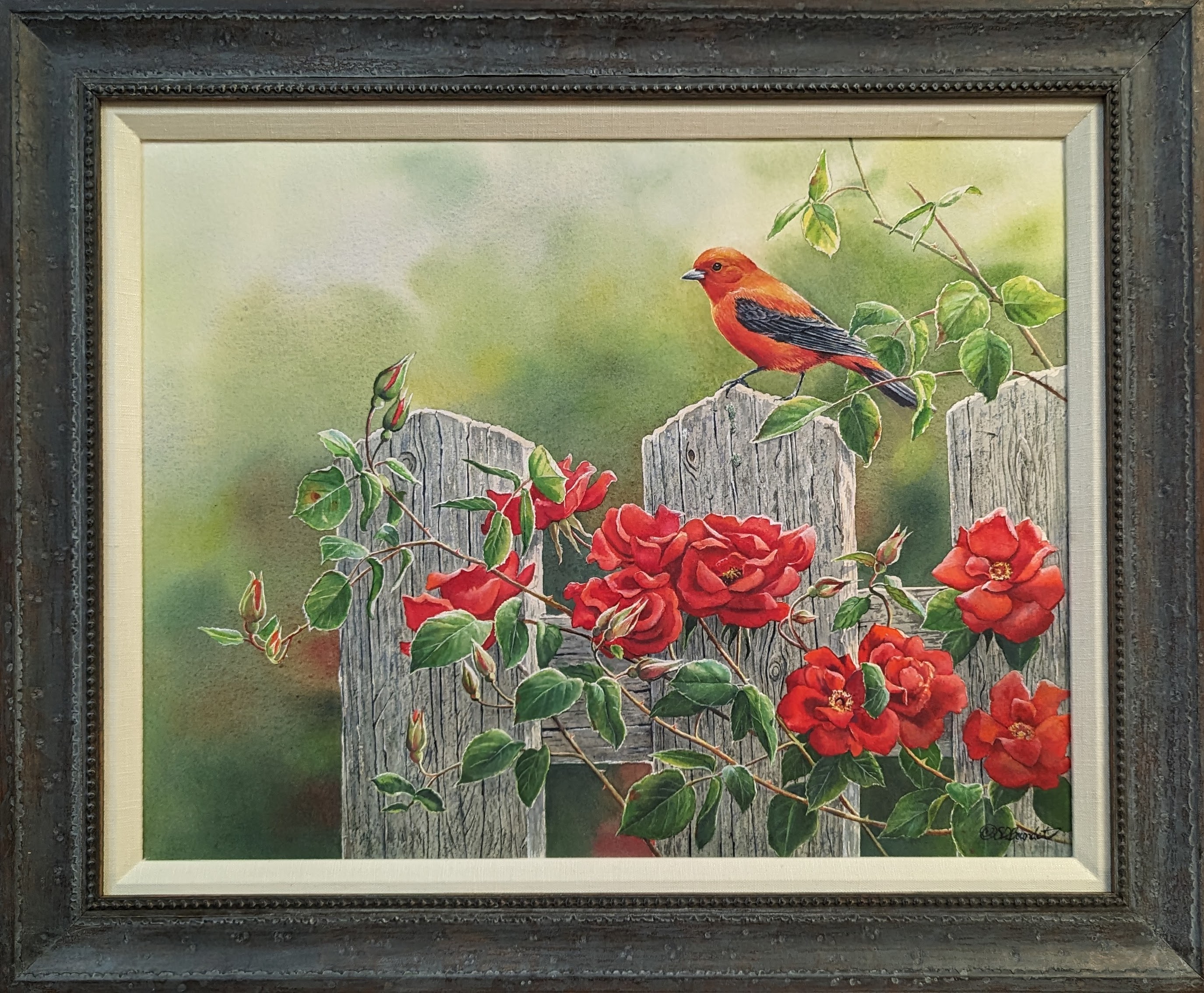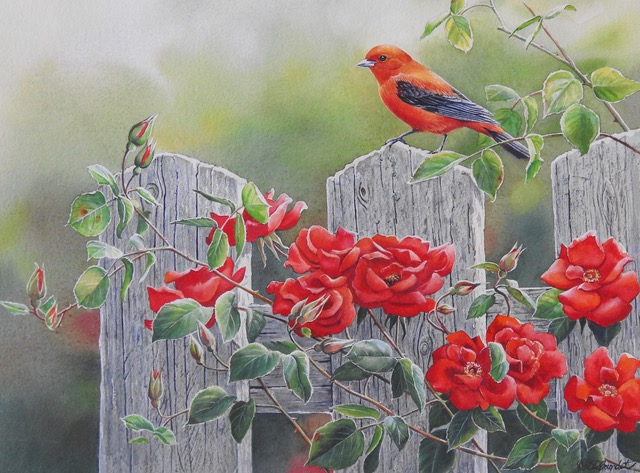 Susan Bourdet: SCARLET TANAGER- Original Watercolor Painting-- (14" x 18")
