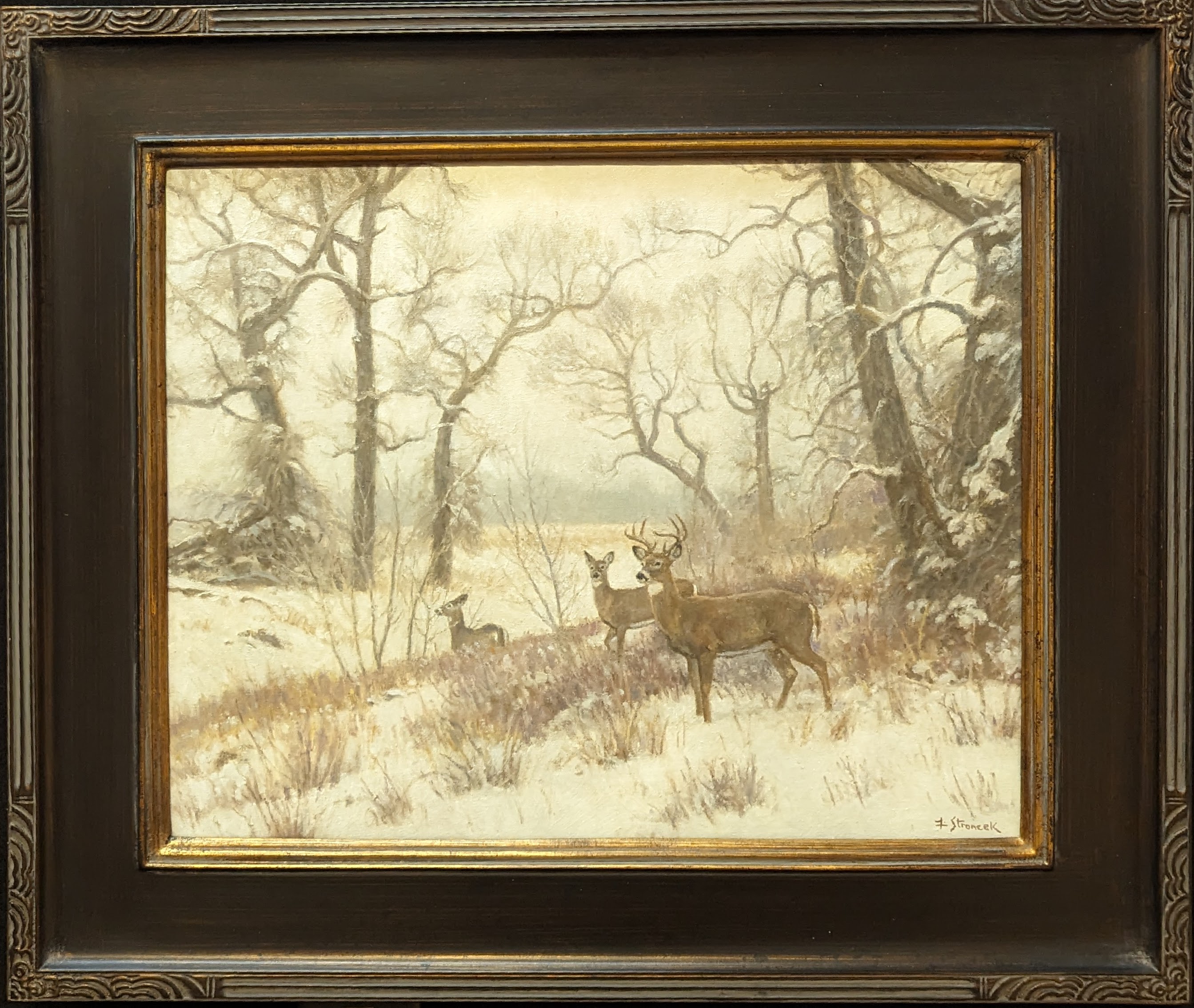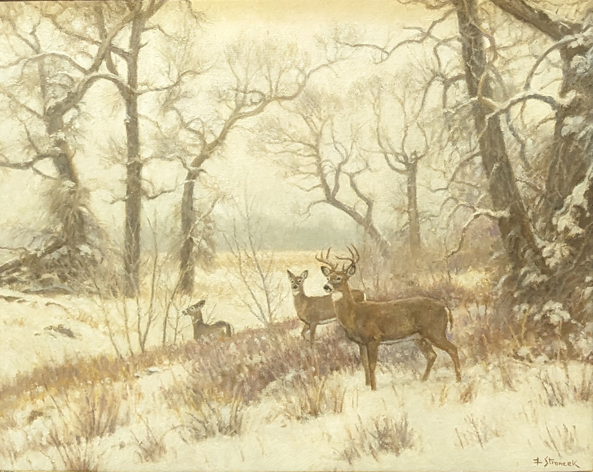 Whitetails and Cottonwoods by Lee Stroncek 16x20 oil on panel