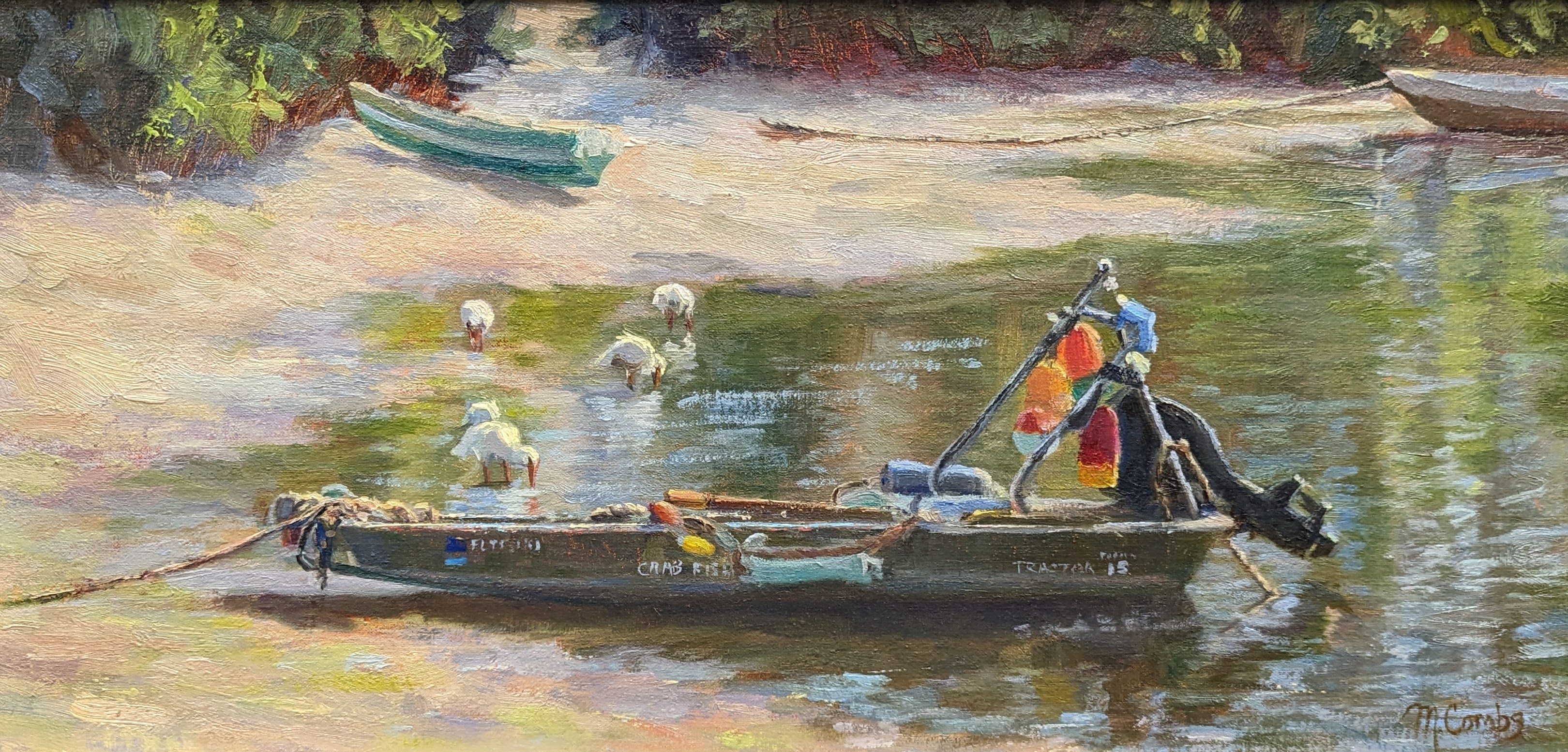 Crab Hunters - Low Tide - (18" x 9") Oil Painting by Twin Cities artist ​​​​​​Michele Combs