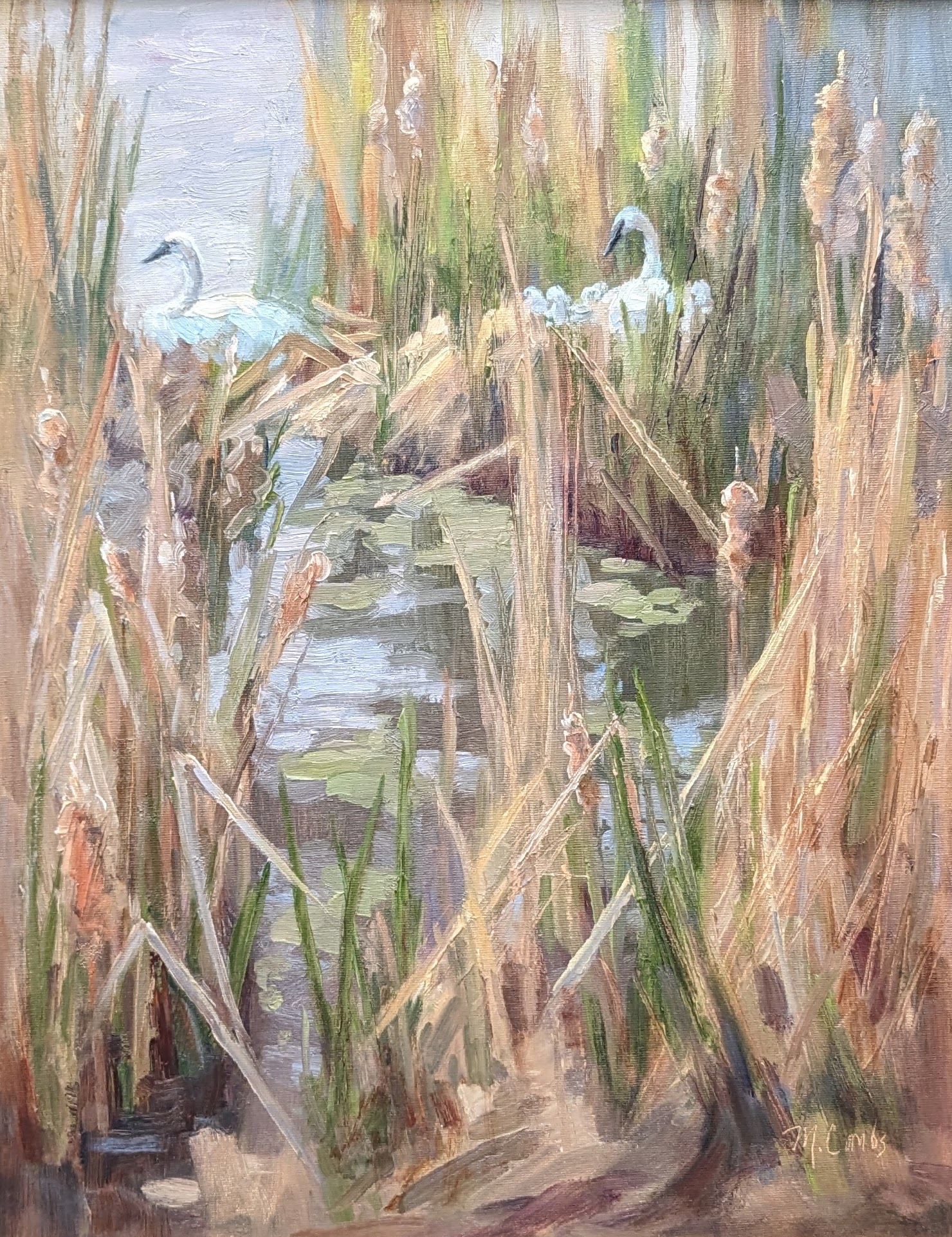 Nestled and Protected - Swans - (12 x 16) Oil Painting by Twin Cities artist Michele Combs