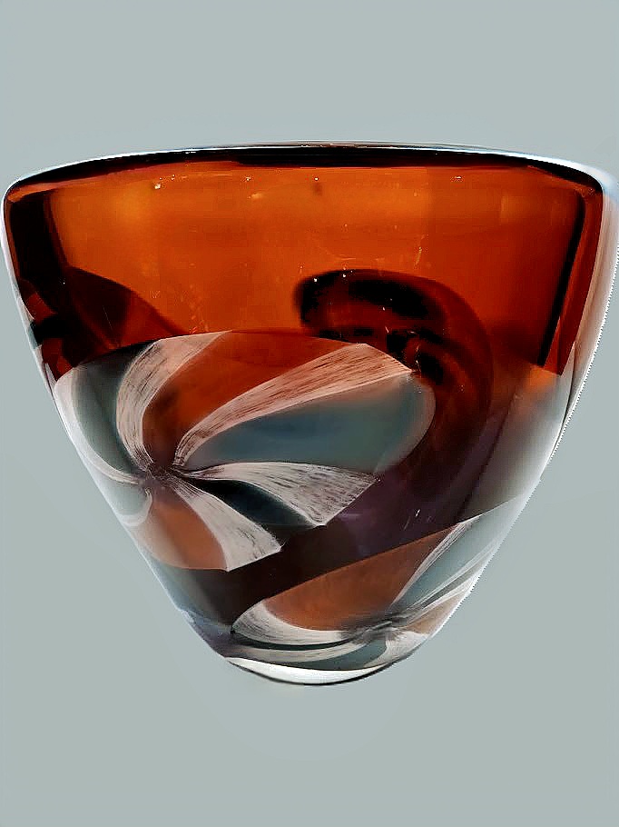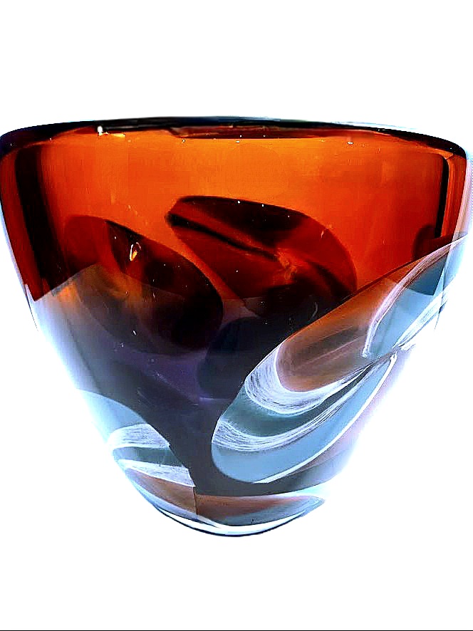 COLOR COOKIE PICK-UP DESIGN BOWL- (Ruby/ Purple, etc.) handcrafted by local Glassblower Robinson Scott, from Anoka, Minnesota. He has been blowing glass for over 45 years. His stunning artwork has earned him many awards through his glassblowing career. “I am always influenced by the importance of simplistic designs that enhance and accentuate the depth, reflectivity and translucency that naturally occur in glass. The predictability and unpredictability of glass creates an atmosphere of discovery, learning and continual growth. This is what motivates me to further test, expand and explore my abilities.”- Robinson Scott.