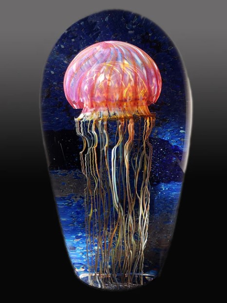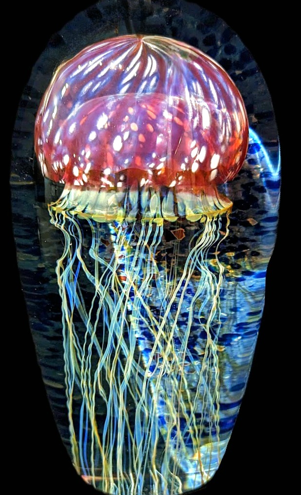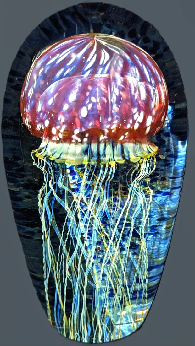 GOLD RUBY JELLYFISH SEASCAPE (SMALL SIZED) is designed by (ONE OF THE TOP 30 BEST WORLD-WIDE GLASSBLOWERS) Master Glassblower Richard Satava from Chico, California