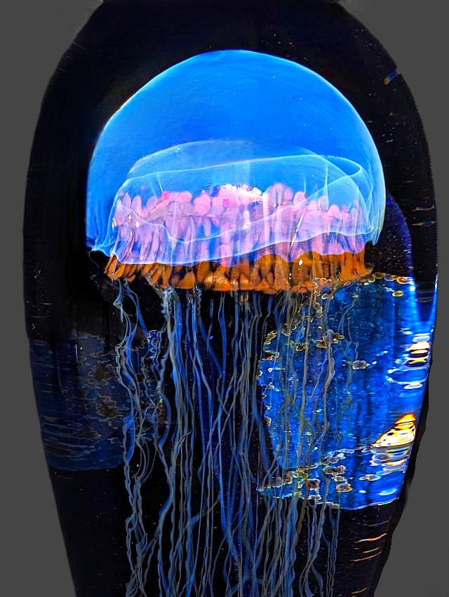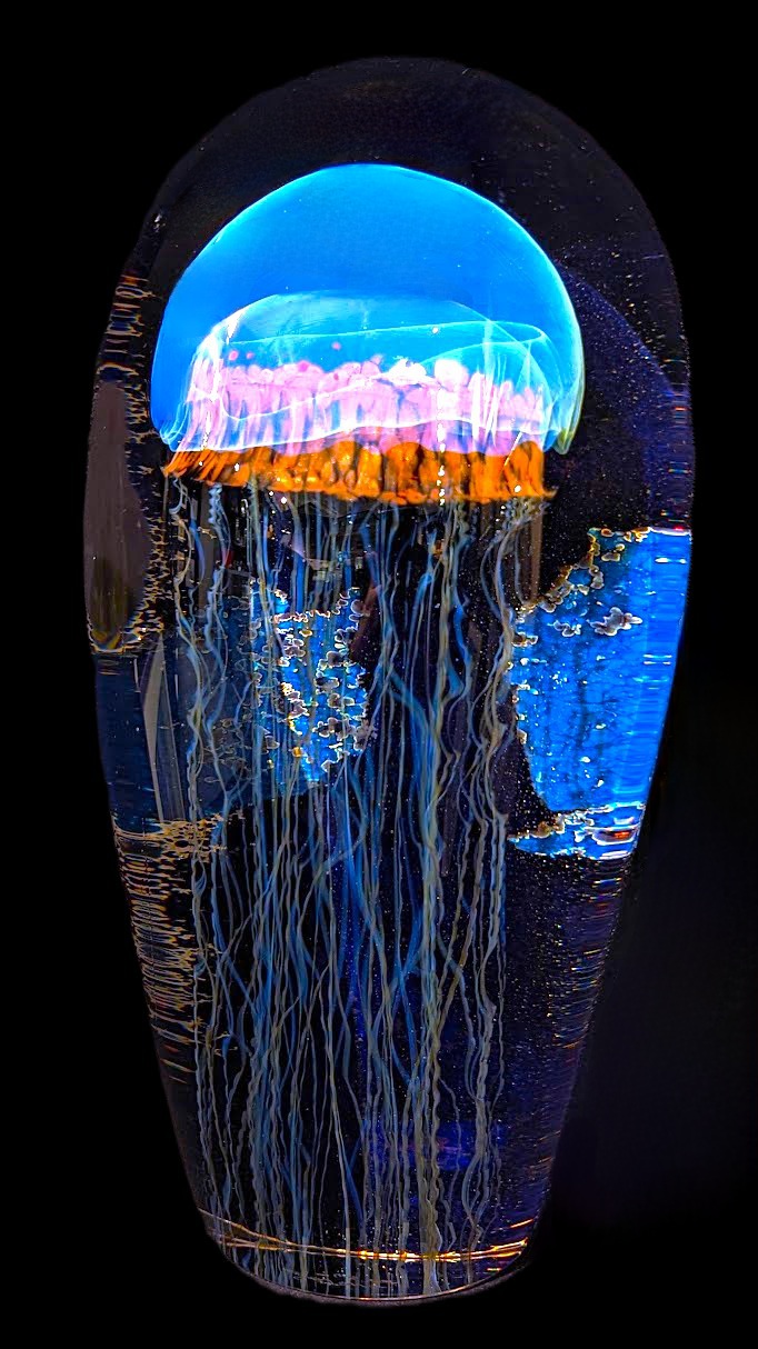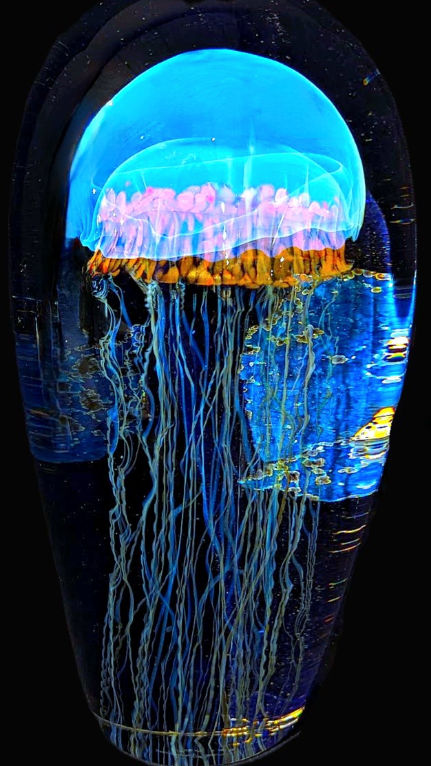 THE MOON JELLYFISH SEASCAPE (X-LARGE- SIZED) is designed by (ONE OF THE TOP 30 BEST WORLDWIDE GLASSBLOWERS) Master Glassblower Richard Satava from Chico, California