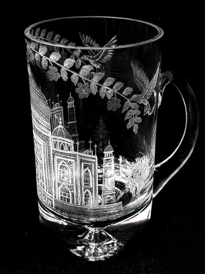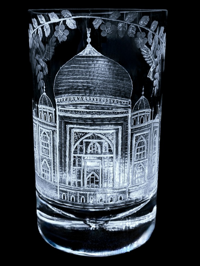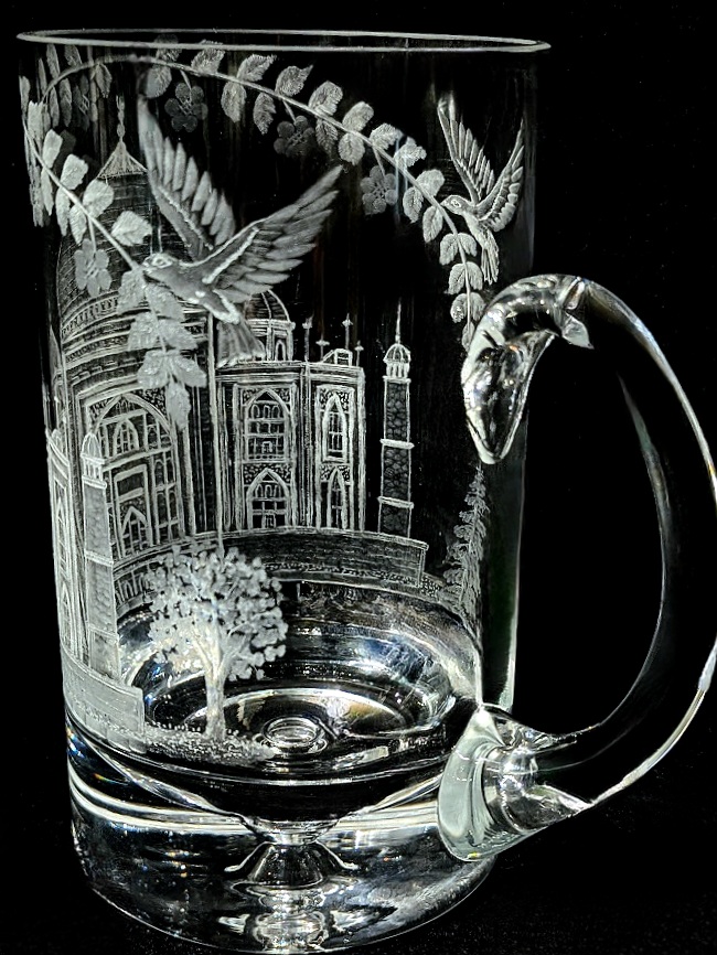 This STEIN W/ THE TAJ MAHAL CUT INTO IT is another amazing cut glass art piece from our very talented local Cut Glass artist Carl Miller.