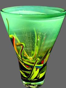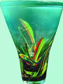 A JADE VASE Multi-Color Pick-Ups- handcrafted by local Glassblower Robinson Scott, from Anoka, Minnesota. He has been blowing glass for over 45 years. His stunning artwork has earned him many awards through his glassblowing career. “I am always influenced by the importance of simplistic designs that enhance and accentuate the depth, reflectivity and translucency that naturally occur in glass. The predictability and unpredictability of glass creates an atmosphere of discovery, learning and continual growth. This is what motivates me to further test, expand and explore my abilities.”- Robinson Scott.