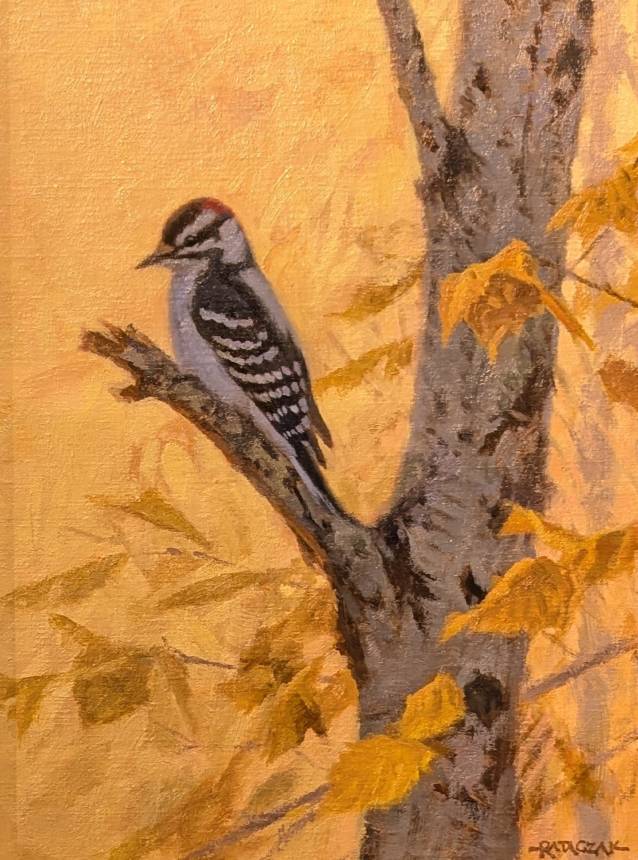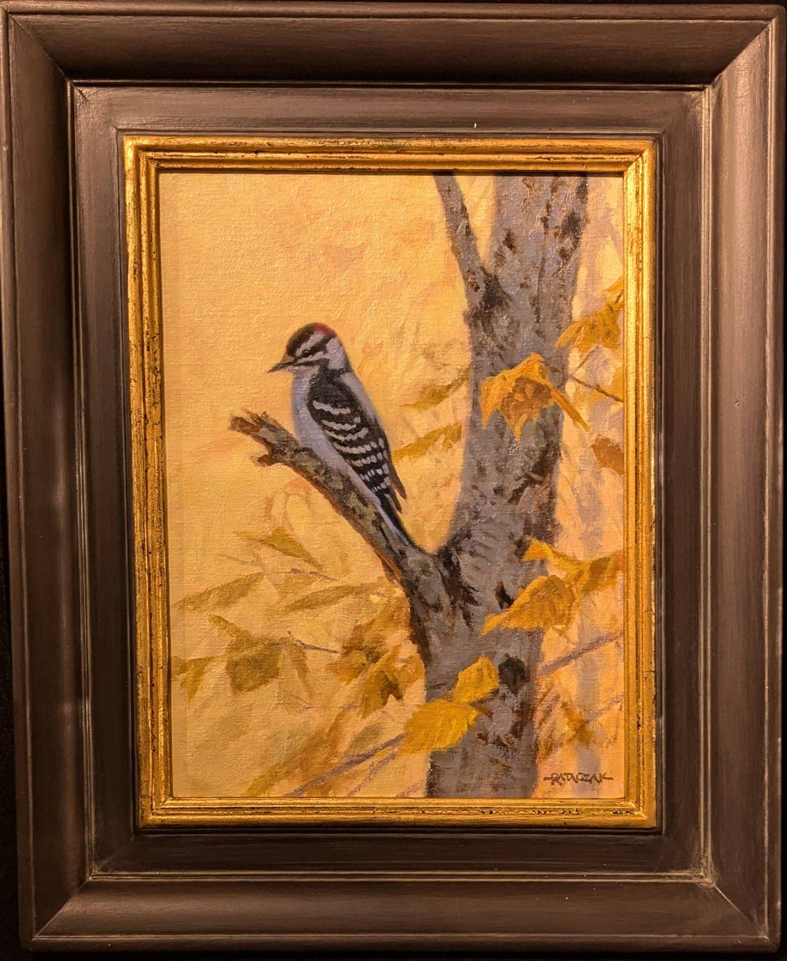 / Downy Wood Pecker - 9" x 12" oil on Canvas by Jim Rataczak