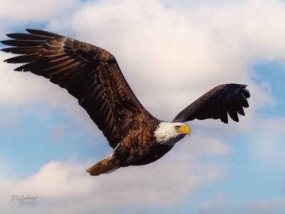 EAGLE FLY-BY ​​​is a photograph note card by local professional photographer Don Anderson of a majestic bald eagle soaring thru the sky. Don Anderson is a, mostly retired, professional portrait photographer. local artist from Rochester,  MN. He has been awarded the TOP PROFESSIONAL PHOTOGRAPHER of SE Minnesota for 3 years in a row.