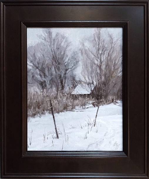 "Wind and Ice" -- is an amazing framed plein air oil painting by the very talented Minnesota artist Hannah Heyer