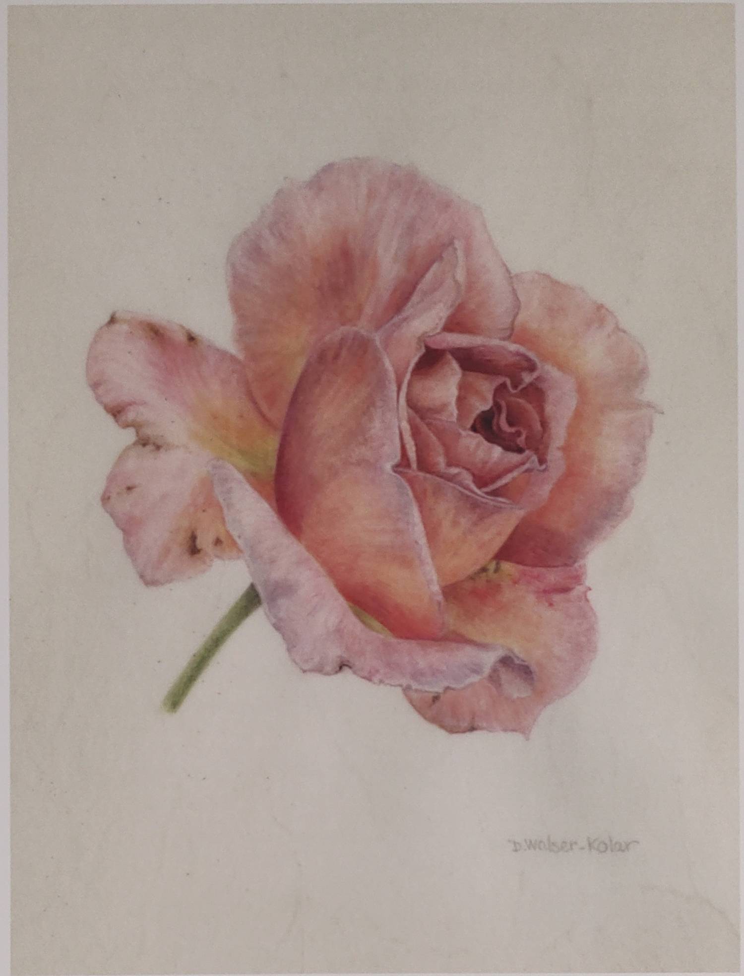/ Peach Rose Study - Watercolor on Vellum (PRINT OF ORIGINAL) Denise Walser-Kohler