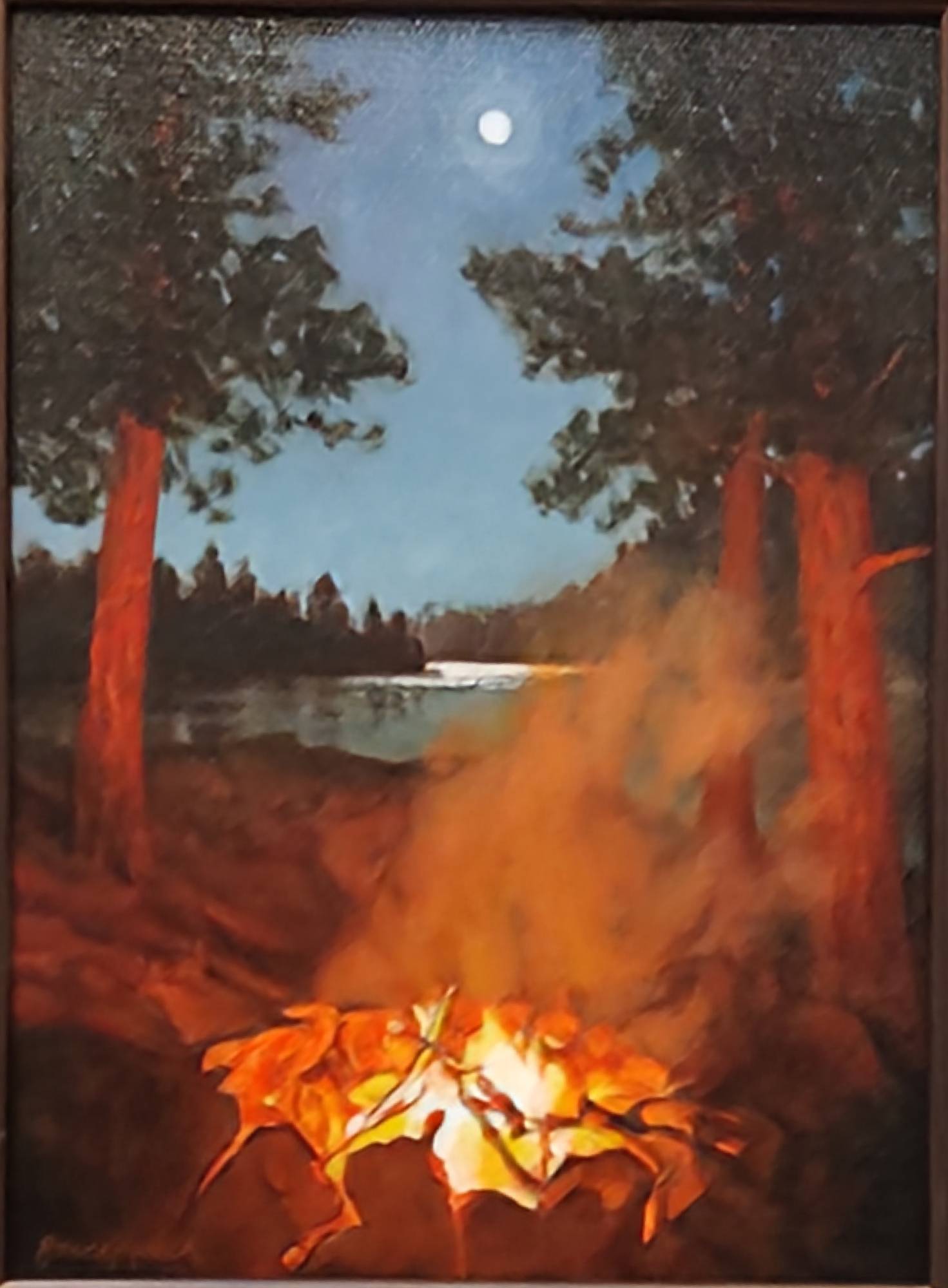 Campfire Study original oil painting on canvas by Minnesota artist Bruce Miller