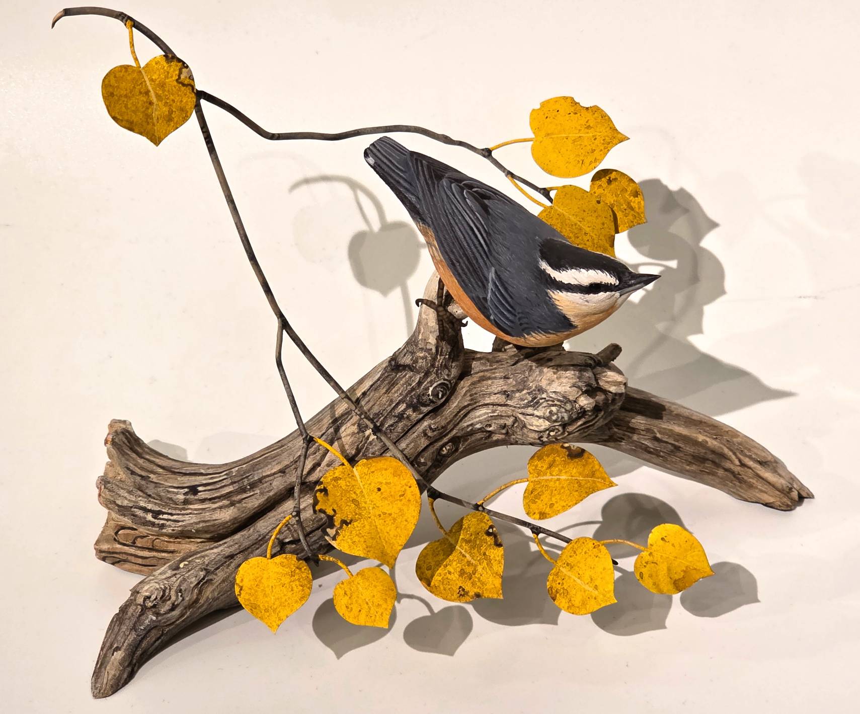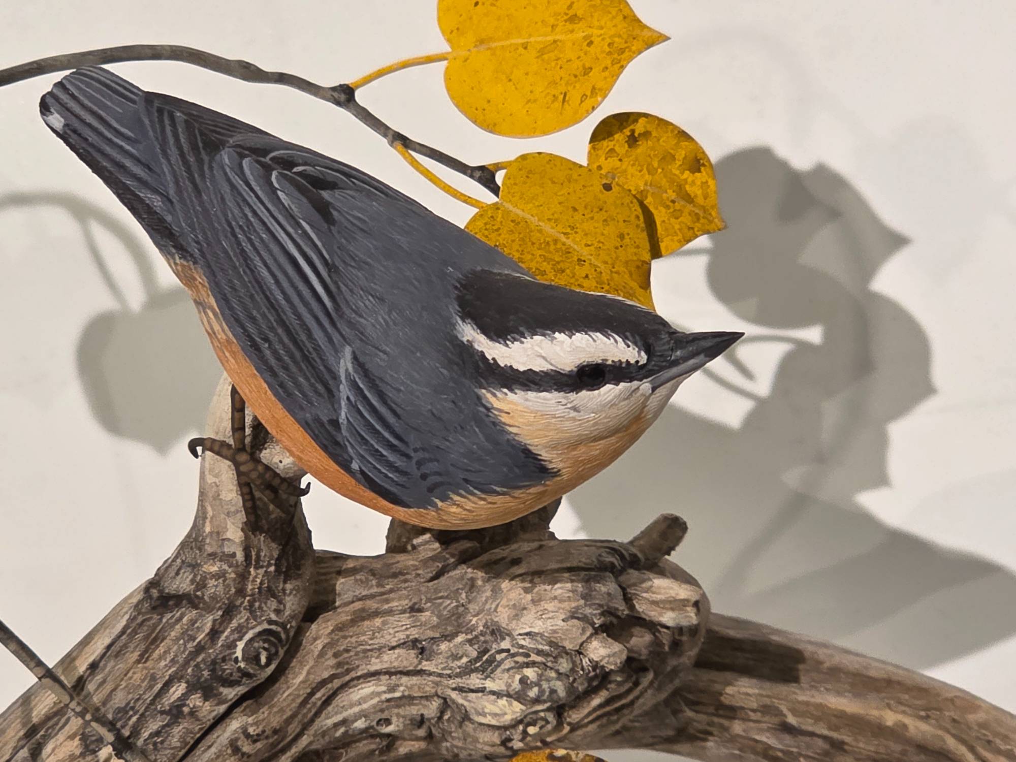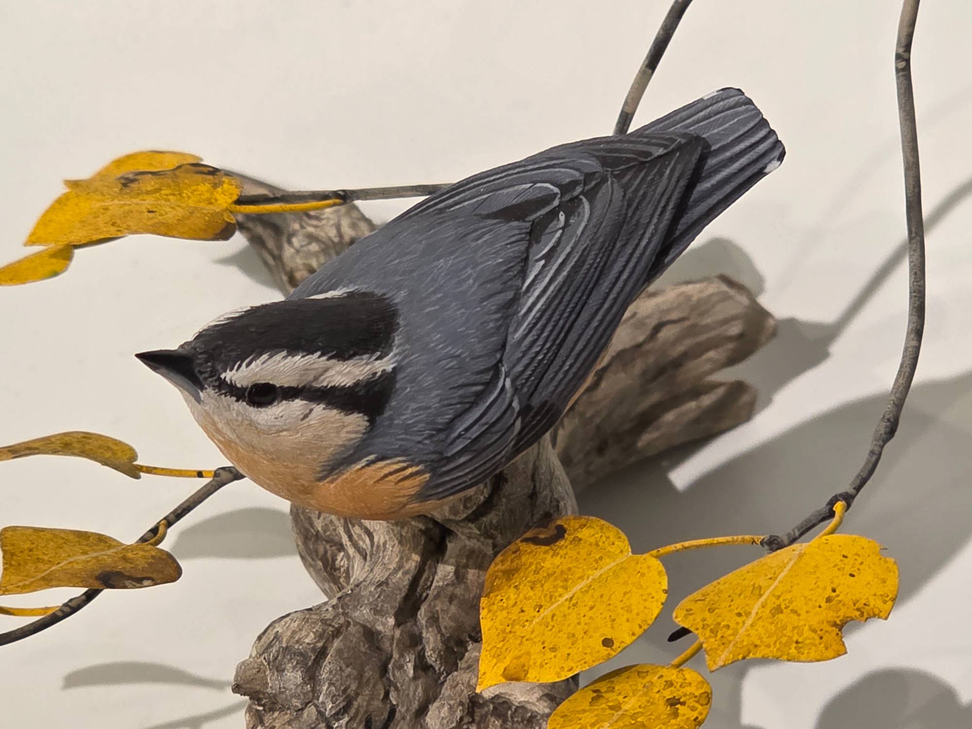 Red Breasted Nuthatch - 7"h x 5"w x 4"d Basswood by Gerald Painter