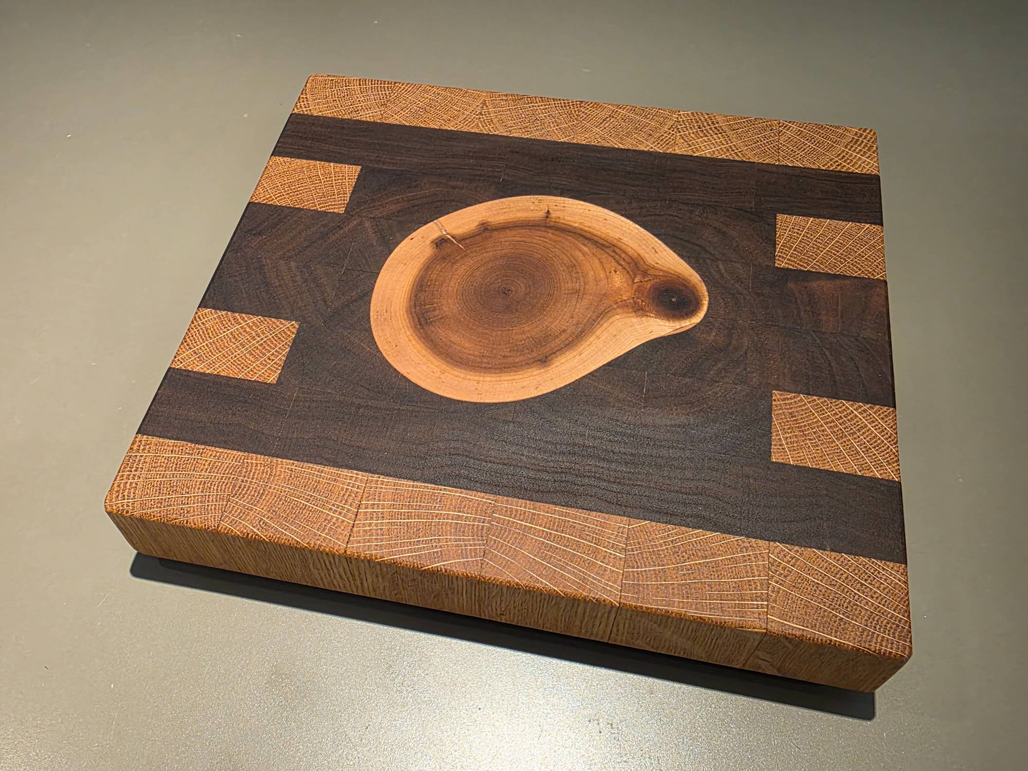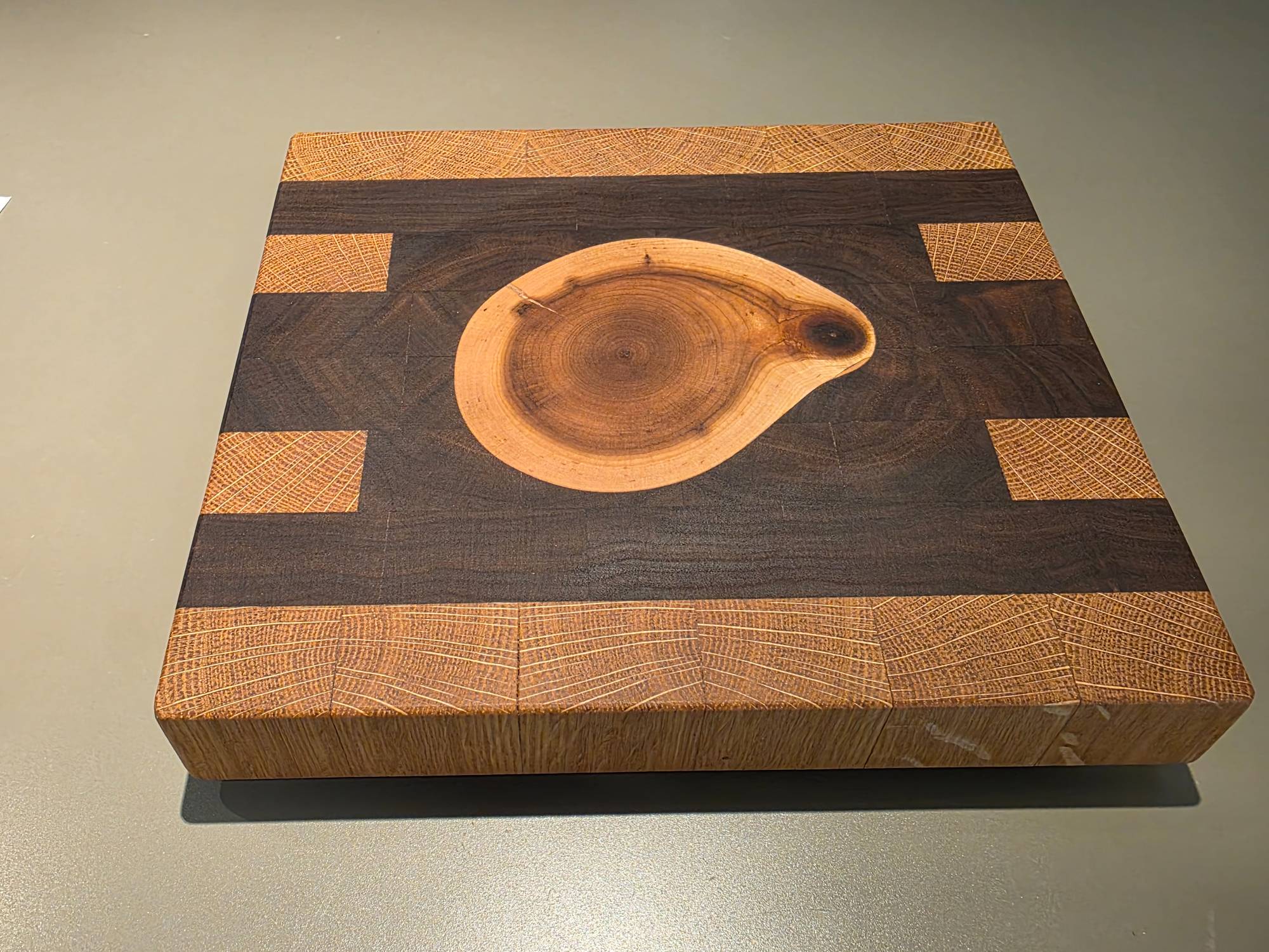 HARDWOOD WOOD Base/Cutting board with CROSS SECTION INLAY feature - by Ron Wolf of MN