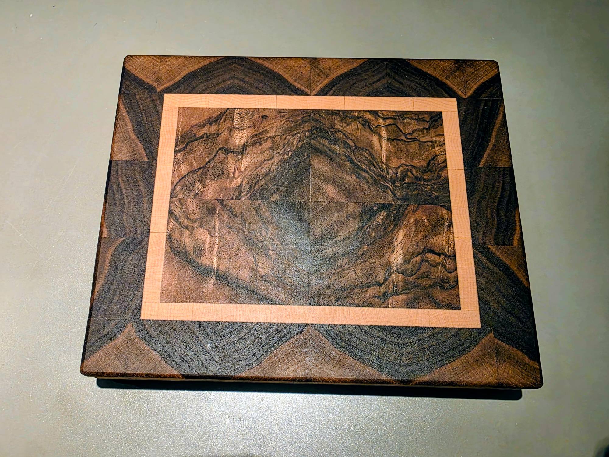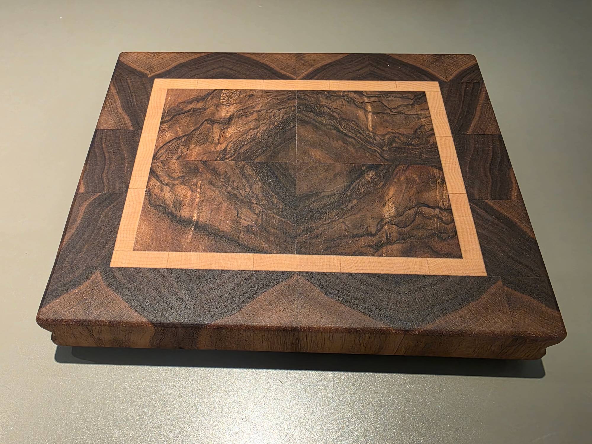 HARDWOOD WOOD Base/Cutting board 7" x 8.75" with CLARO WALNUT feature - by Ron Wolf of MN