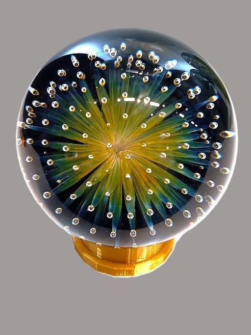 GLASS BLOWN MARBLE- Dichroic & Anemone from local Rochester Glass Artist Seth Auger from FireKist Glass. Each is different from the other, each is handcrafted not to be duplicated. Seth Auger has been a glass artist for 20 years. He fell in love with the process of melting glass to create art while in college. His work in our gallery include vases, bells, marbles, pendants & ornaments.