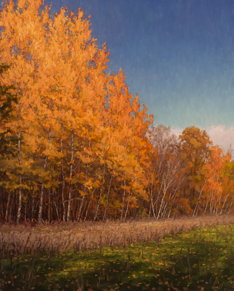 "I am a self-taught artist living and working in rural southeastern Minnesota. Working in oils and watercolour, my work is a study of place, time, and season. I love the place where I live; as familiar as the back of my hand, yet never the same two days in a row. I draw a lot of inspiration from my local area. I enjoy the challenge of plein air painting, and the way it encourages taking a closer look, to more fully take in what might otherwise go unnoticed. My plein air paintings, done outdoors on location, usually within 2 to 3 hours, attempt to capture the fleeting and changing view of a particular place and time as I see it. My studio works, supported by plein air studies, memories, emotion, and imagination, are built up through a lot of time and layers of paint and allow me to work in more detail. In all my work, I try to capture the beauty I see in the simple, everyday blessings, in faces and events, subtle and breathtaking, convinced that, "Every good gift and every perfect gift is from above, and comes down from the Father of lights, with whom there is no variation or shadow of turning." (James 1:17)" -- Hannah Heyer