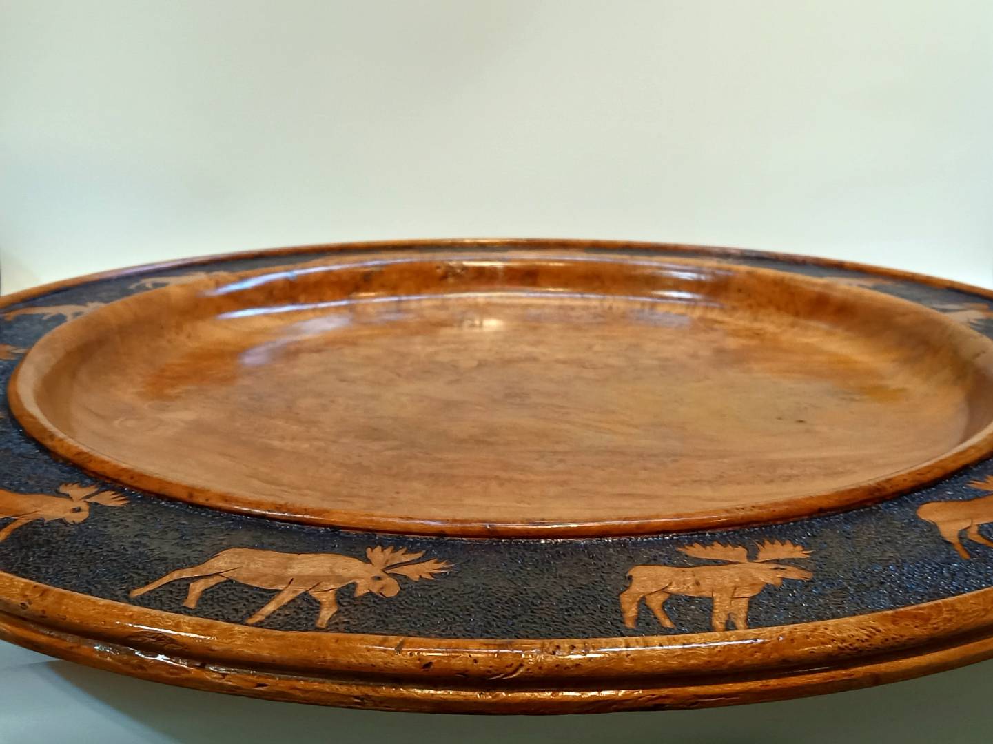 A MOOSE PLATTER from Cherry Burl Wood- woodcarving by Harold Rosauer from Manchester Iowa