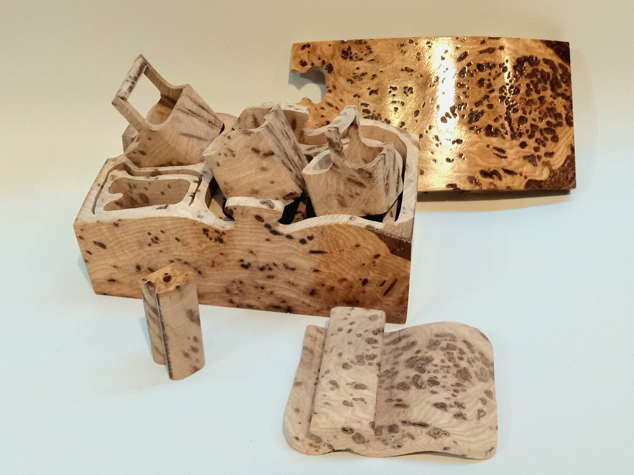 Harold Rosauer: PUZZLE BOX- HICKORY BURL