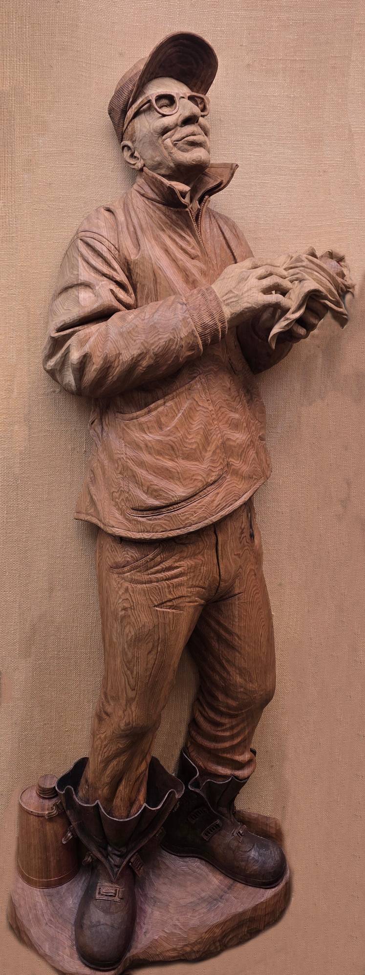 His first memory of woodcarving was taking his father’s palm gouge to his mother's breadboard and finding the effort met with a distinct lack of appreciation. Shortly thereafter there was an assignment to carve a Scotty dog out of Ivory soap in third grade. Attempting to develop excessive detail with a dull table knife, one of the legs was broken. The teacher, responding to a polite inquiry as to the possibility of mending, confiscated both dog and implement, exclaiming, “It’s obvious you’ll never be a carver!”