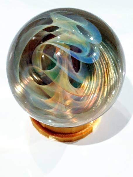 Seth Auger, is an experienced lamp glass artist living in Rochester MN. Creating intricate art glass marbles, vases, ornaments and other work. Honing his skills with a range of glass. He implements silver and gold fuming, implosions, or creates new techniques to pull out unique beauty and explore his creative mind. Seth will custom design his own tools in his endless pursuit to develop his art.