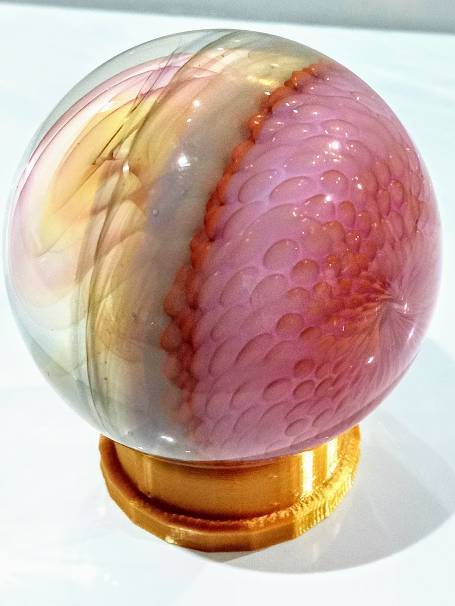 A PINK- ELECTRUM SNAKESKIN MARBLE by Rochester, MN glassblower Seth Auger.