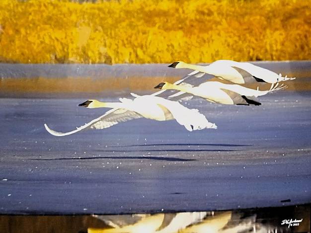 TRUMPER SWANS 3/ TAKE OFF-- is an 11" x 14" photographed Print by photographer Don Anderson. Don Anderson is a local artist from Rochester, MN. He has been awarded the TOP PROFESSIONAL PHOTOGRAPHER of SE Minnesota for 3 years in a row. Don Anderson, a mostly retired professional portrait photographer.