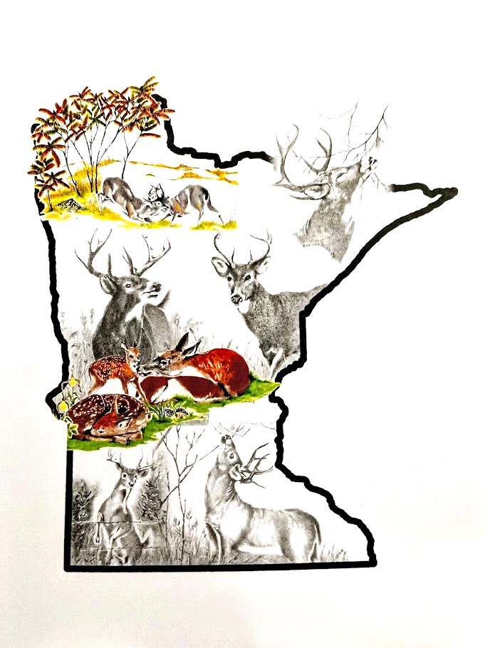 WHITETAIL DEER OF MINNESOTA (Note Card) is done by Wisconsin Artist Daryl Skrupky. New to the gallery, he has a strong biology background, with works in colored pencil depicting the wildlife of the upper midwest. He works in various artforms, we carry his cards reproduced from some of his original colored pencil drawings.