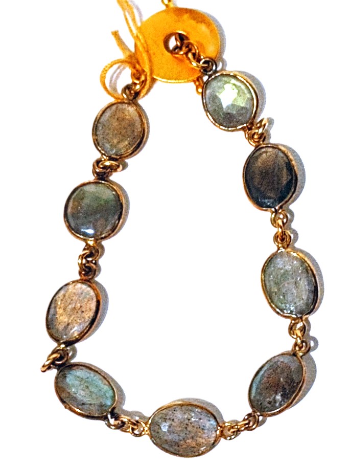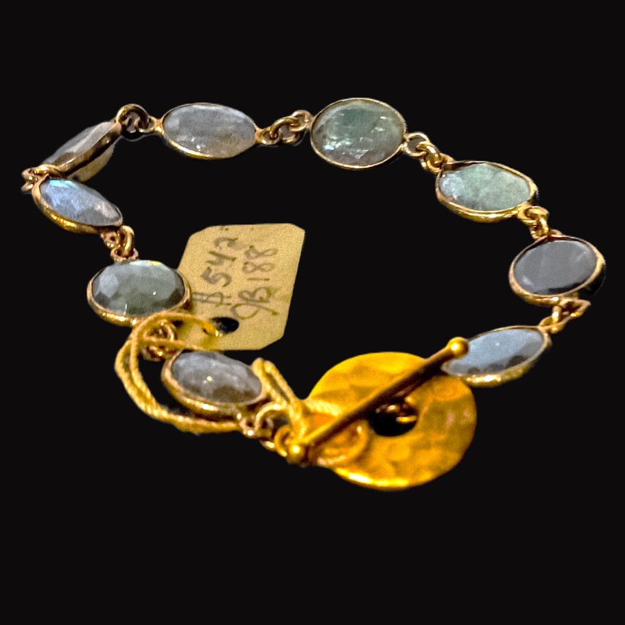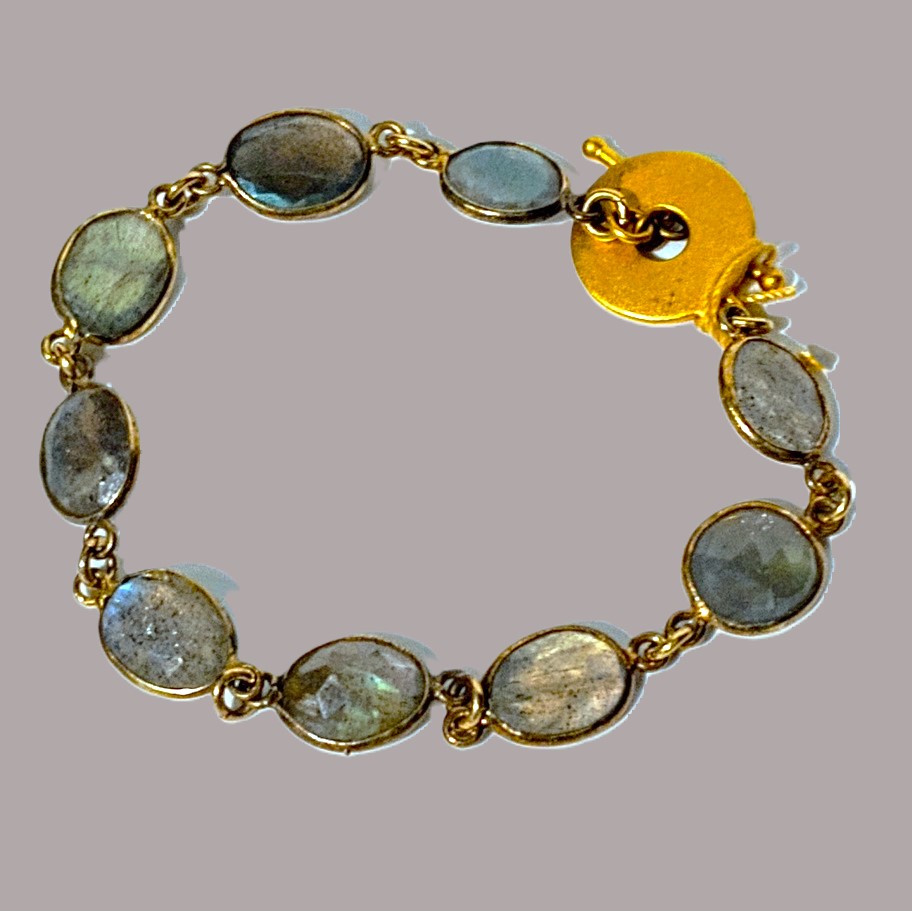 7.5"-Vermeil hammered toggle clasp, goldfill, rose cut high-quality vermeil-wrapped bezel Labradorite beads-Bracelet
