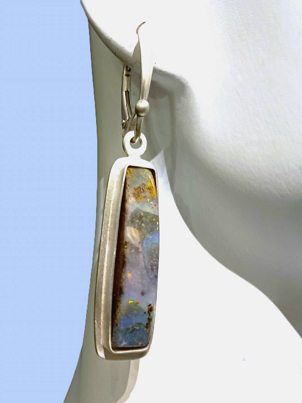 Beautiful, stunning handcrafted Sterling Silver LONG BOULDER OPAL leverback style earrings are created by the talented local Jeweler John Hasseler.