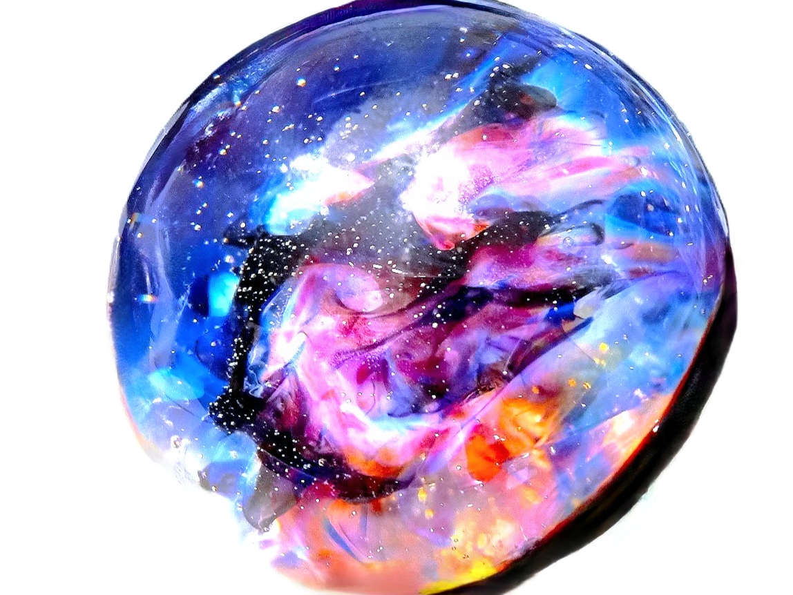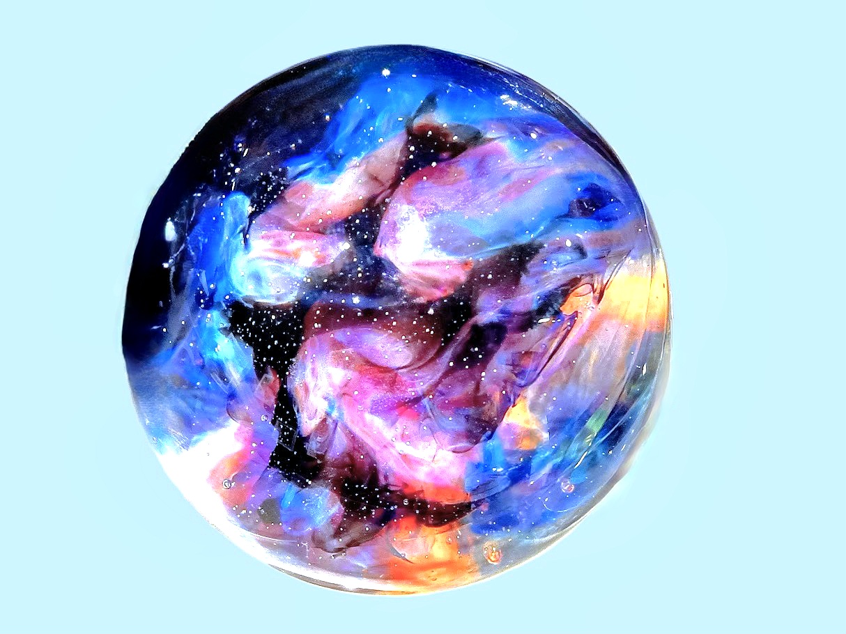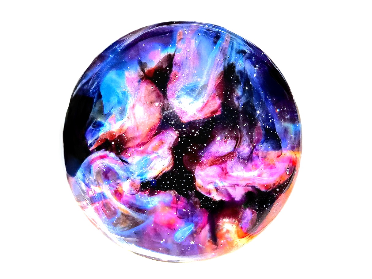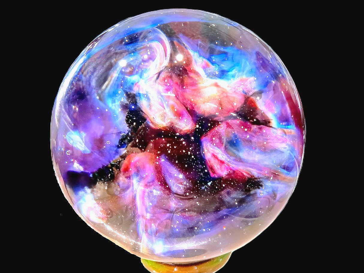 A GALACTIC NEBULA Sphere (or 'marble') by the creative artworks of Sean Clayton. The camera cannot capture how amazing and beautiful these pieces truly are! Their stunning beauty cannot easily be described in words. These pieces definitely have the WOW factor.