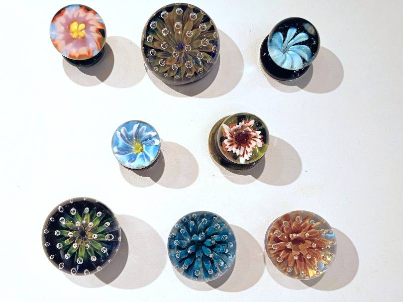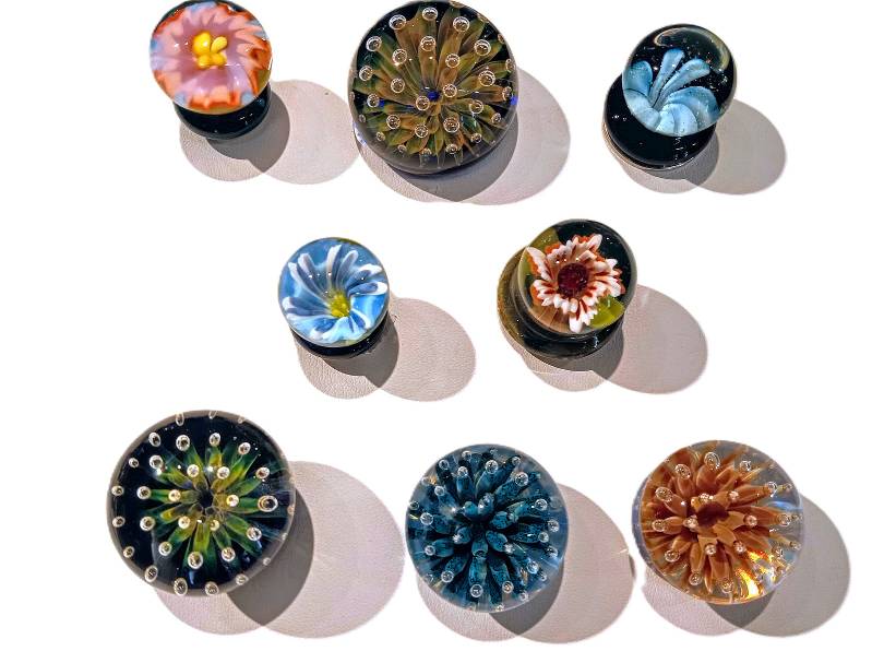 A variety of unique, one-of-a-kind, gorgeous ART GLASS MAGNETS by Rochester Glass Artist Seth Auger from FireKist Glass. Each is different from the other, each is handcrafted not to be duplicated. Seth Auger has been a glass artist for 20 years. He fell in love with the process of melting glass to create art while in college. His work in our gallery include vases, magnets, marbles & ornaments.