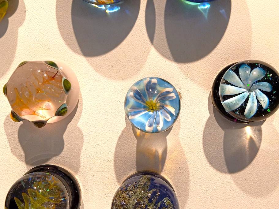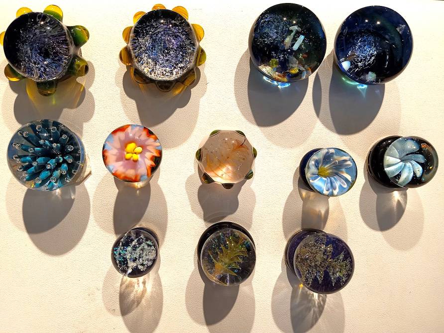 A variety of unique, one-of-a-kind, gorgeous ART GLASS MAGNETS by Rochester Glass Artist Seth Auger from FireKist Glass. Each is different from the other, each is handcrafted not to be duplicated. Seth Auger has been a glass artist for 20 years. He fell in love with the process of melting glass to create art while in college. His work in our gallery include vases, magnets, marbles & ornaments.