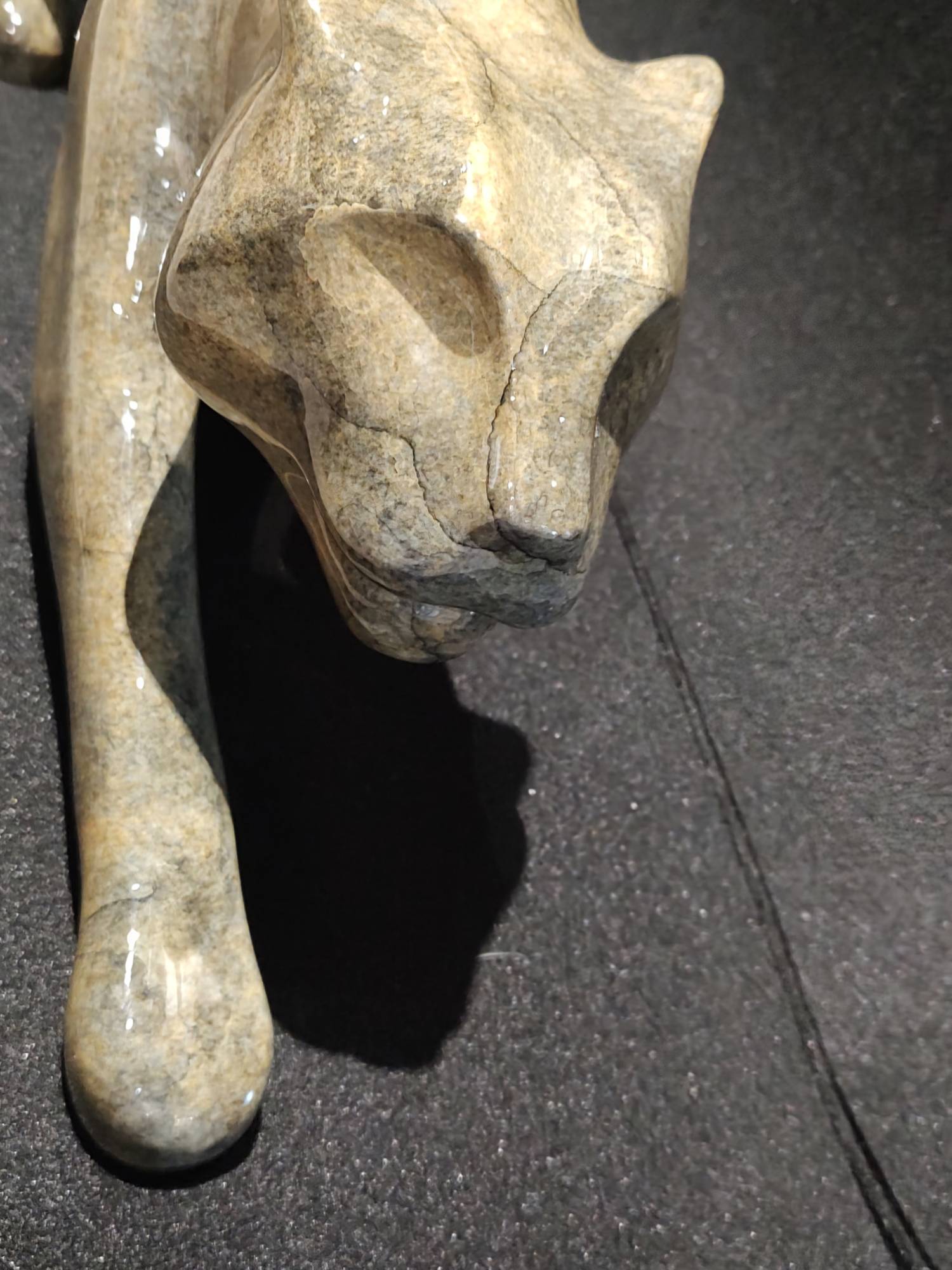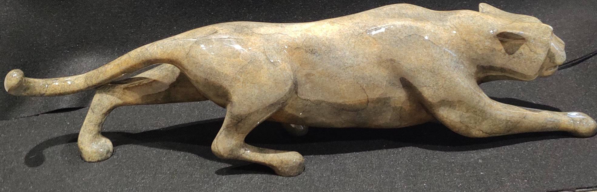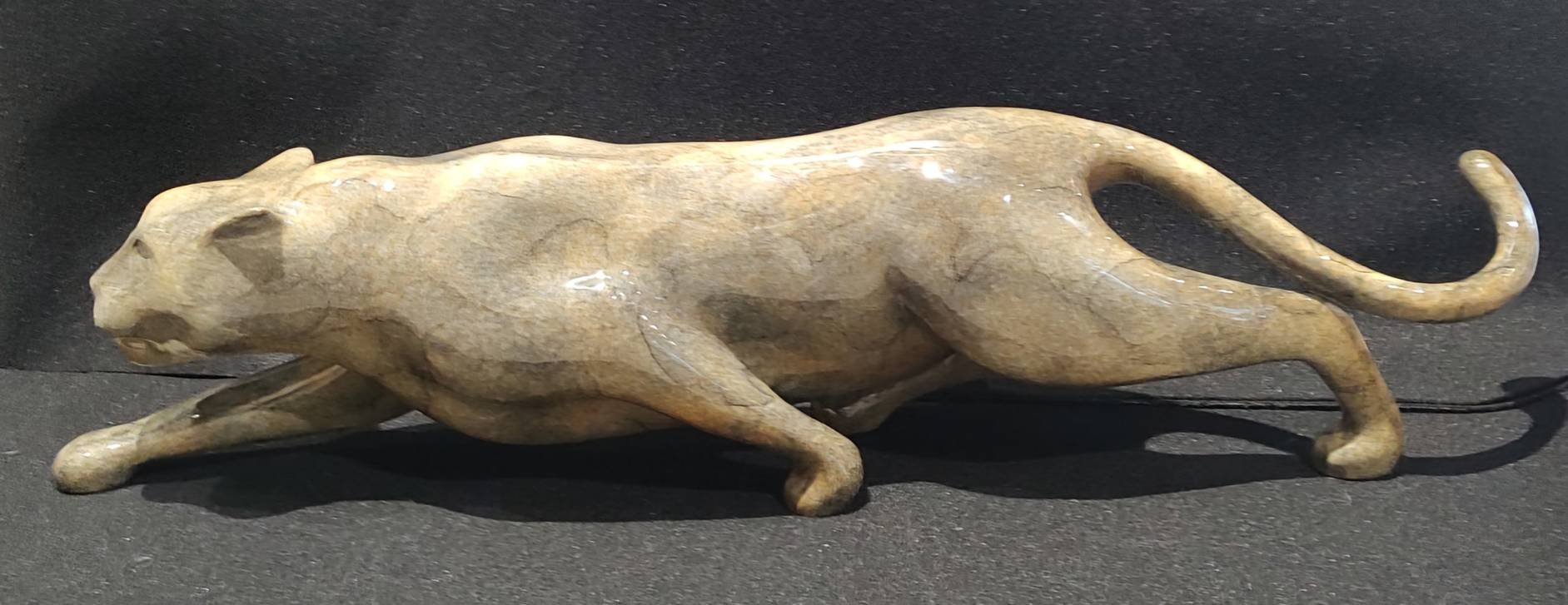 QUOTE FROM WEBSITE: Panther is a term to describe several large cats. The cougar in North America: the jaguar in South America; and the leopard in Africa are all magnificent animals that are renown for their hunting capabilities. This bronze captures the classic pose of the stalk.