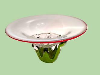 Bowl Six Finger Base White/Red/Green - handcrafted by local Glassblower Robinson Scott, from Anoka, Minnesota. He has been blowing glass for over 45 years. His stunning artwork has earned him many awards through his glassblowing career. “I am always influenced by the importance of simplistic designs that enhance and accentuate the depth, reflectivity and translucency that naturally occur in glass. The predictability and unpredictability of glass creates an atmosphere of discovery, learning and continual growth. This is what motivates me to further test, expand and explore my abilities.”- Robinson Scott.