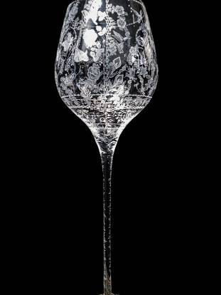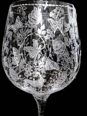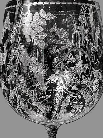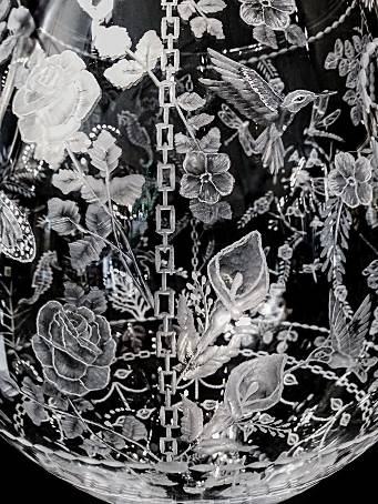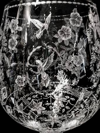 Carl Miller: Goblet-(Extra Large- 3FT): CUT GLASS- Hummingbirds, Flowers & Butterflies, and more