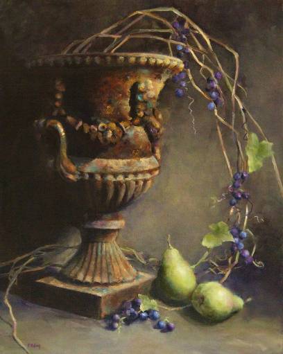 PATRICIA RILEY: Rusted Urn (OIL PAINTING 30 in X 24 in)
