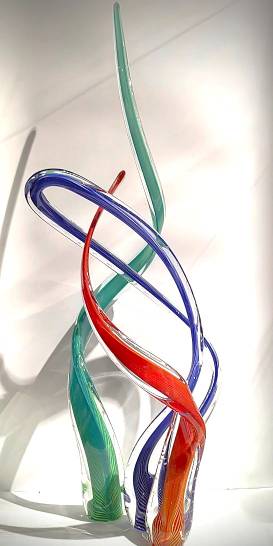 Large Threaded Double Tango with a Twist (in Blue/Purple, Turquoise/Green & Red/Yellow) bScott Hartley from Infinity Art Glass of Benton, Kansas.