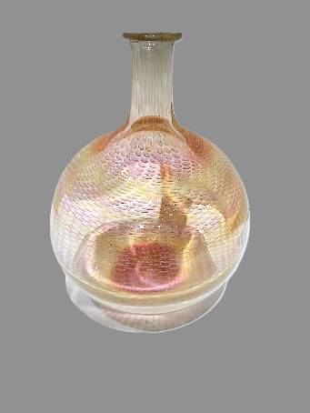 SNAKESKIN CLEAR VASE by Rochester Glass Artist Seth Auger from FireKist Glass. Each is different from the other, each is handcrafted not to be duplicated. Seth Auger has been a glass artist for 20 years. He fell in love with the process of melting glass to create art while in college. His work in our gallery include vases, magnets, marbles & ornaments.