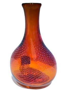 SNAKESKIN BLUE ON AMBER VASE by Rochester Glass Artist Seth Auger from FireKist Glass. Each is different from the other, each is handcrafted not to be duplicated. Seth Auger has been a glass artist for 20 years. He fell in love with the process of melting glass to create art while in college. His work in our gallery include vases, magnets, marbles & ornaments.