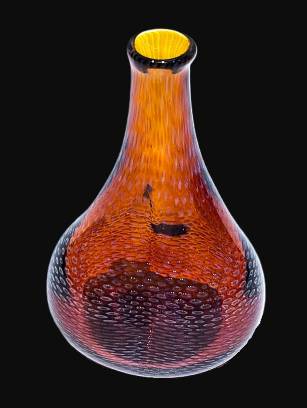 SNAKESKIN BLUE ON AMBER VASE by Rochester Glass Artist Seth Auger from FireKist Glass. Each is different from the other, each is handcrafted not to be duplicated. Seth Auger has been a glass artist for 20 years. He fell in love with the process of melting glass to create art while in college. His work in our gallery include vases, magnets, marbles & ornaments.