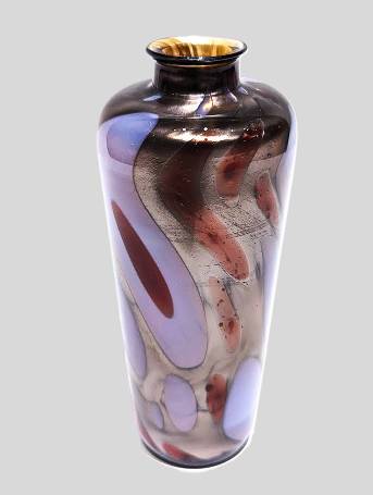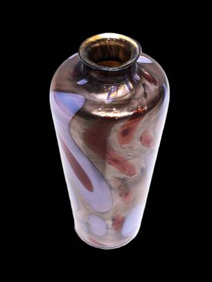 TALL ELECTRUM GHOST RED VASE by local, Rochester Minnesota, Glass Artist Seth Auger from FireKist Glass. Each is different from the other, each is handcrafted not to be duplicated. Seth Auger has been a glass artist for 20 years. He fell in love with the process of melting glass to create art while in college. His work in our gallery include vases, magnets, marbles & ornaments.