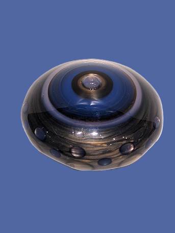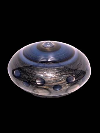 A SPACESHIP PAPER-WEIGHT by Rochester Glass Artist Seth Auger from FireKist Glass by local, Rochester Minnesota, Glass Artist Seth Auger from FireKist Glass. Each is different from the other, each is handcrafted not to be duplicated. Seth Auger has been a glass artist for 20 years. He fell in love with the process of melting glass to create art while in college. His work in our gallery include vases, magnets, marbles & ornaments.