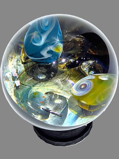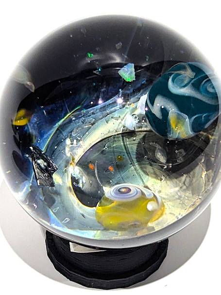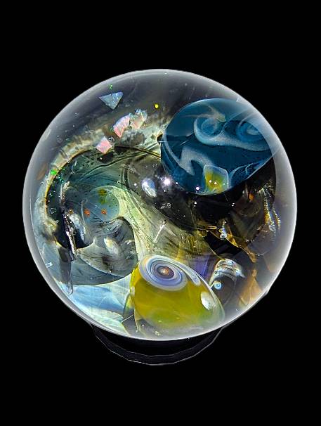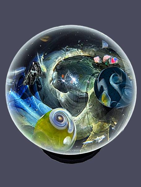SPACE MARBLE by Rochester Glass Artist Seth Auger from FireKist Glass. Each is different from the other, each is handcrafted not to be duplicated. Seth Auger has been a glass artist for 20 years. He fell in love with the process of melting glass to create art while in college. His work in our gallery include vases, marbles & ornaments.