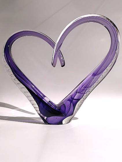 Infinity Art Glass: LARGE- TRANSPARENT LOVE SCULPTURE (Purple)
