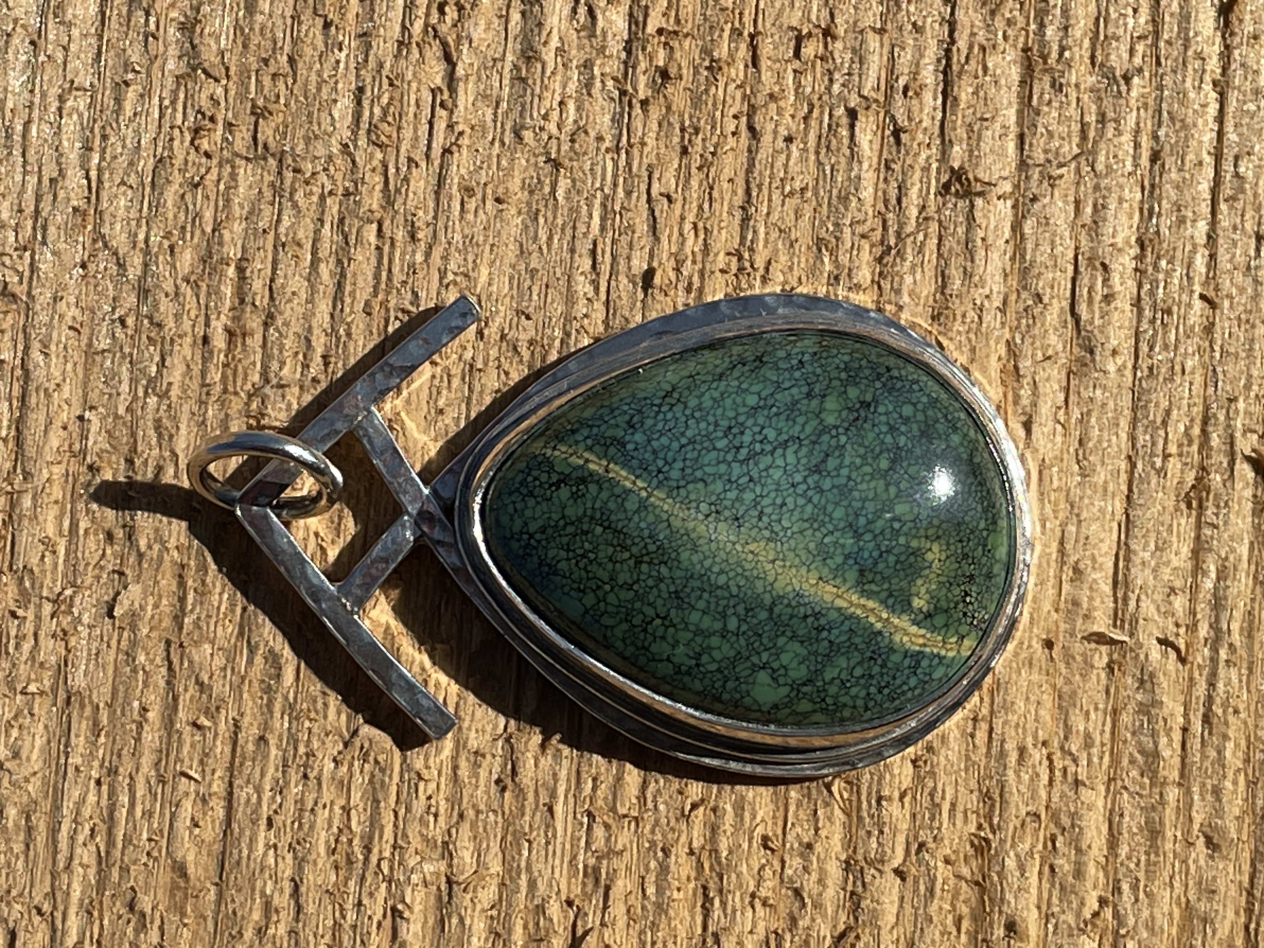 Hubei turquoise is mined in China. The setting is Sterling Silver.