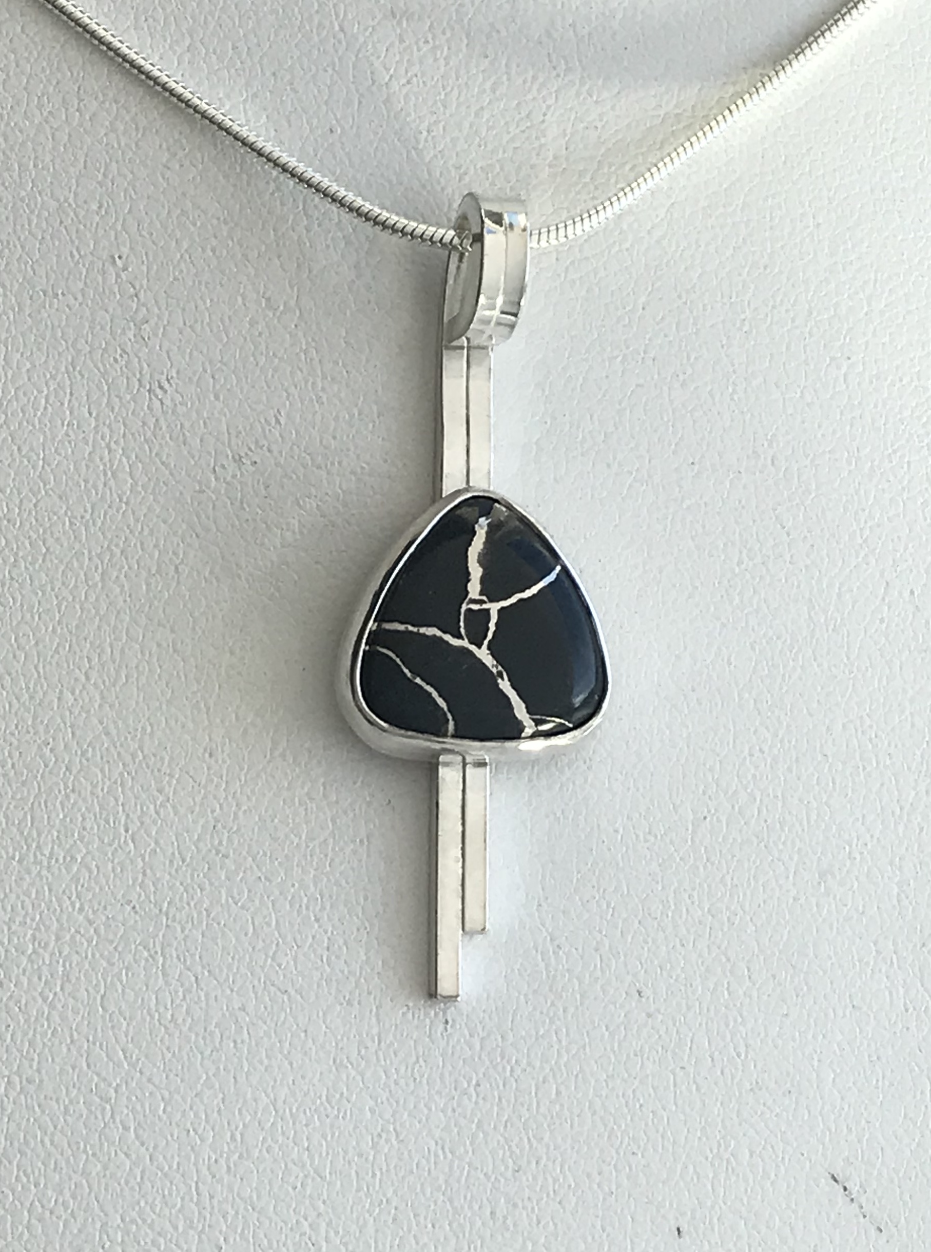 Man-made silver in quartz gemstone. Sterling silver setting.
