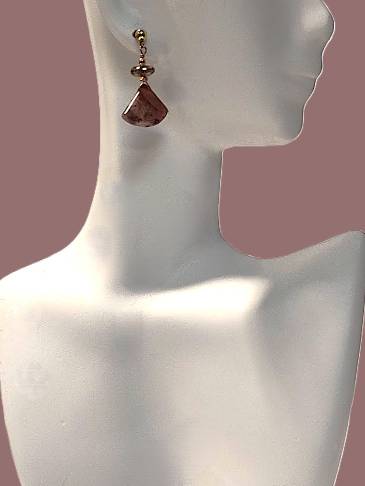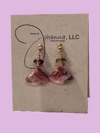 Gold fill Post Earrings with a smooth triangular Pink Kona Dolomite bead topped with a faceted rondel Smokey Quartz bead.