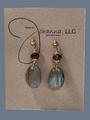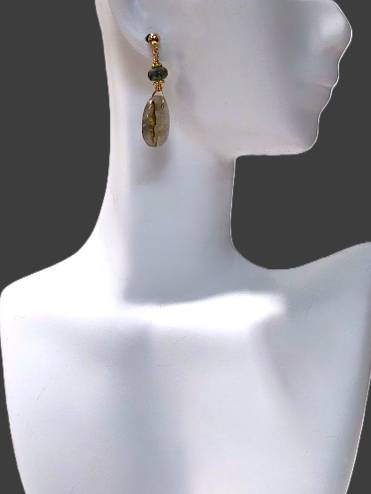 Gold fill Post Earrings with smooth oval cabochons Labradorite topped with faceted rondels of green Tourmaline with vermeil Bali accent beads