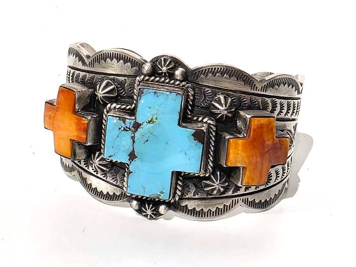 Peter Wood: MURPHY PLATERA CUFF- 3 Cross/ Spiney Oyster/ Turquoise