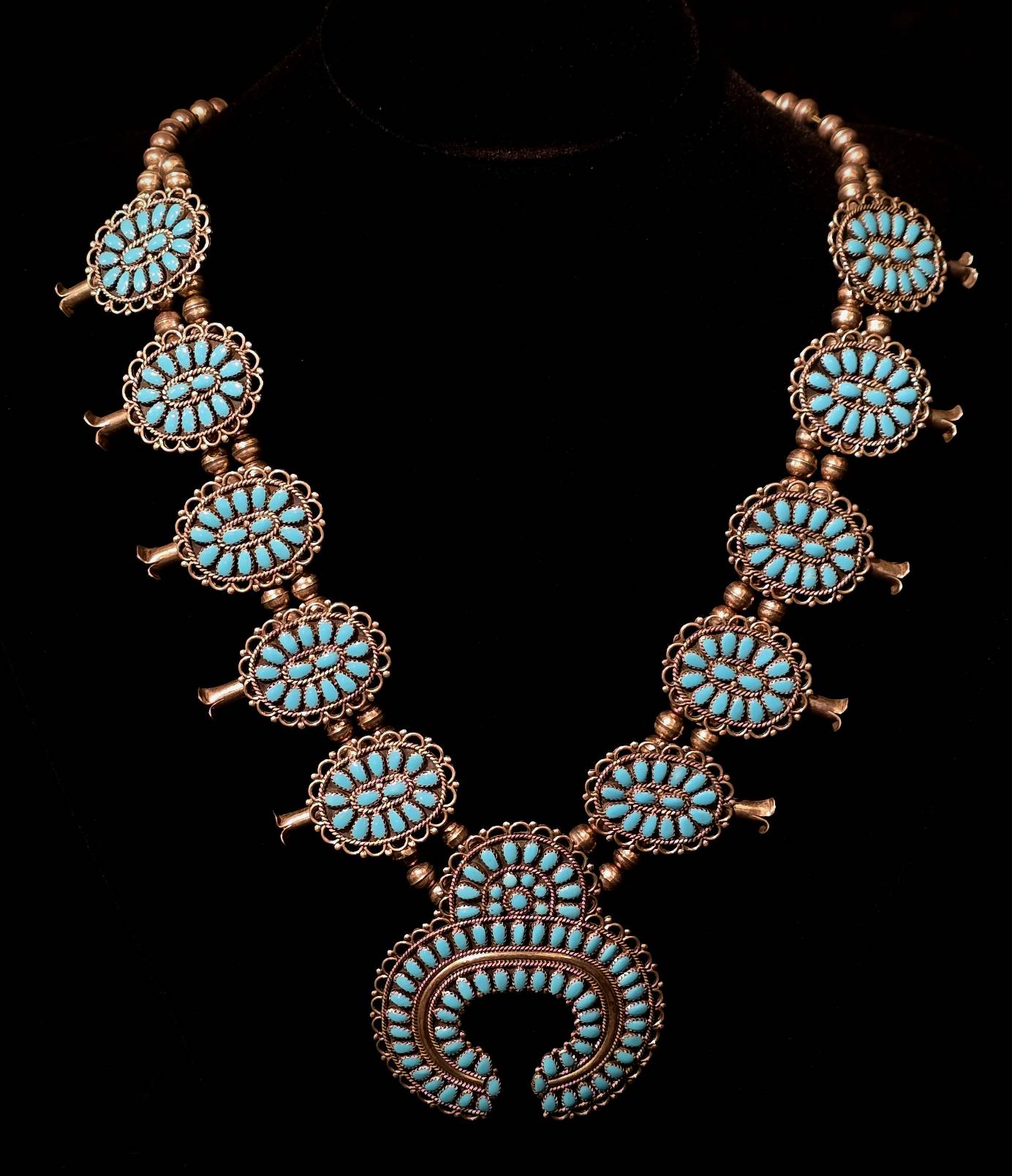 Turquoise and Sterling - Squash Blossom - Larry Moses Begay - Navajo