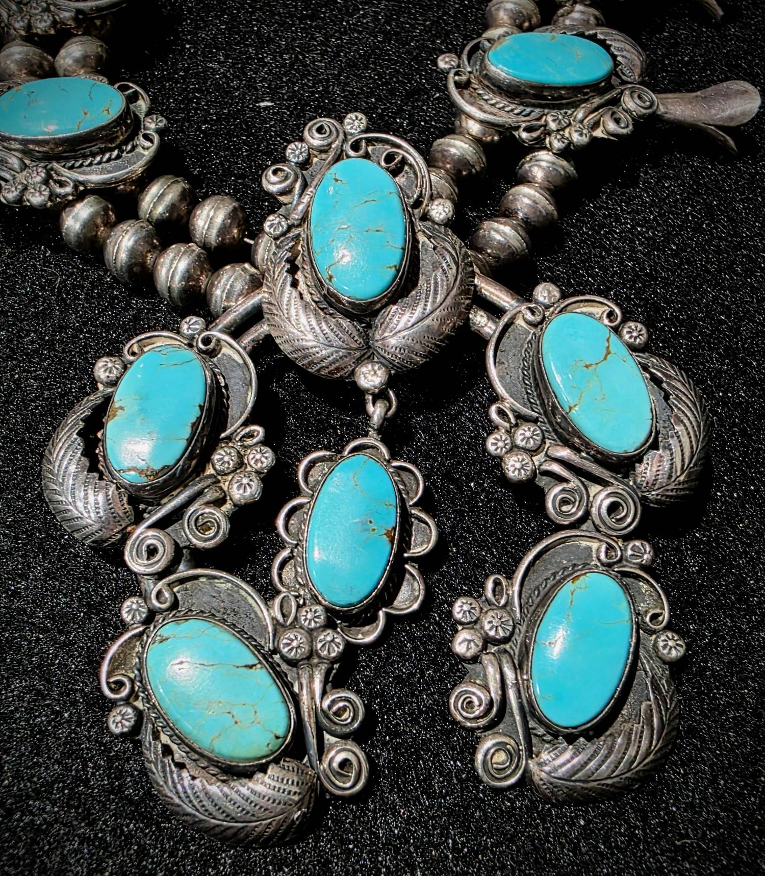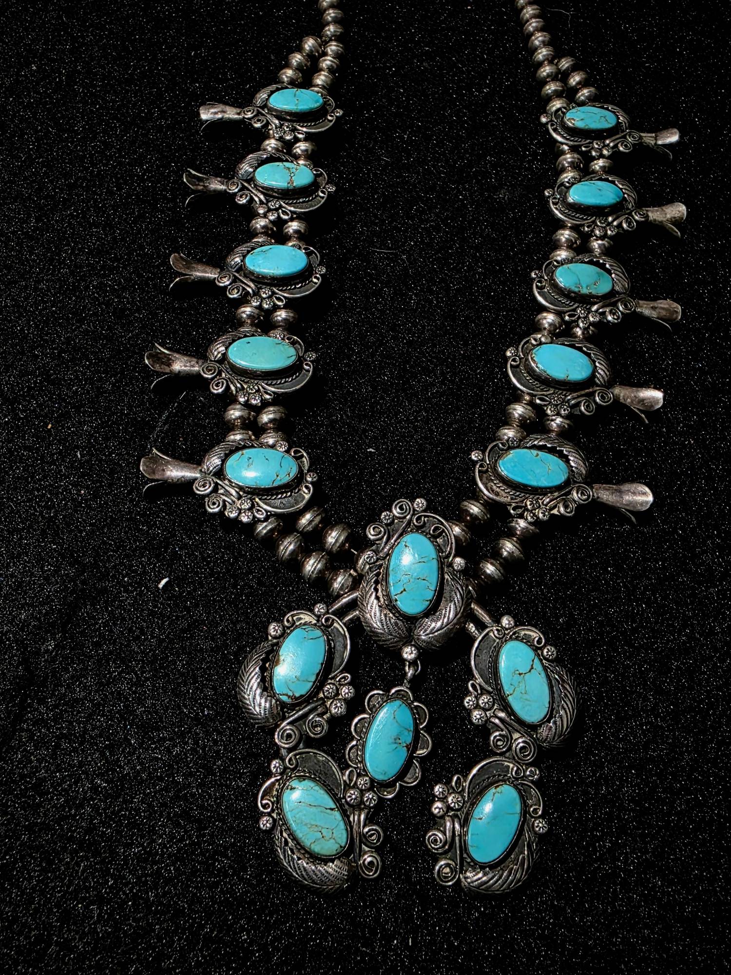 Turquoise and Sterling - Squash Blossom - Leo Harvey - Navajo